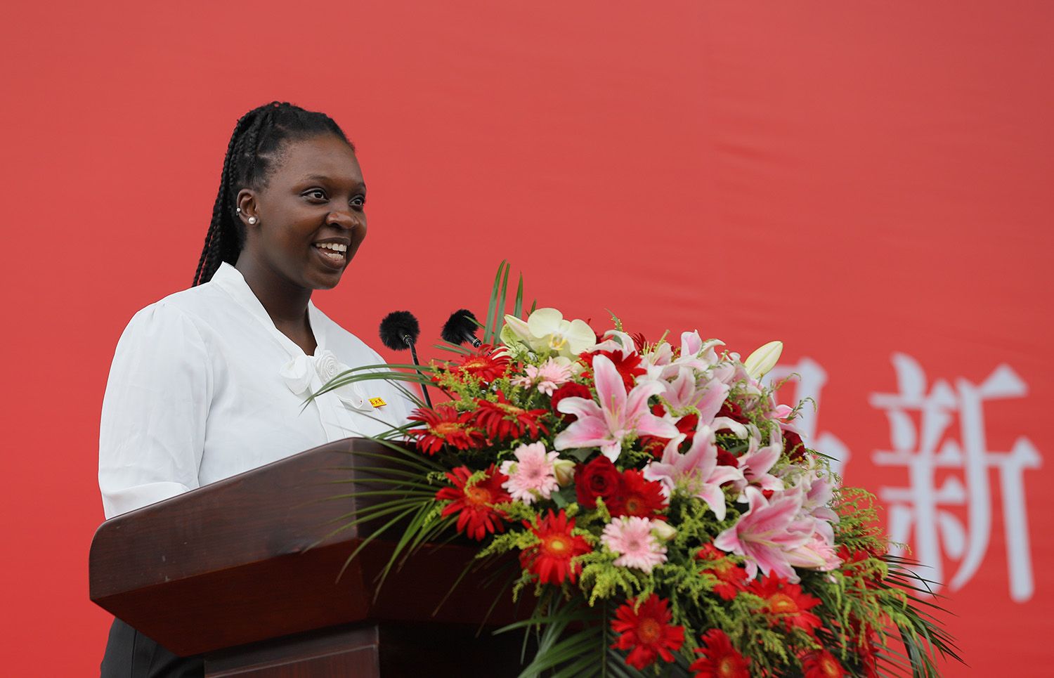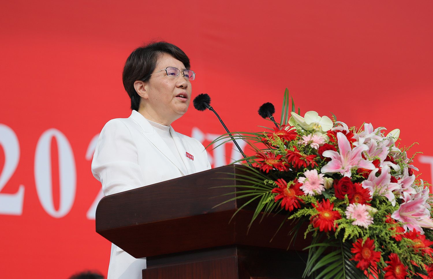 典禮上,校長邢衛(wèi)紅講話,代表學(xué)校向全體2023級(jí)新生表示熱烈歡迎,向辛勤指導(dǎo)訓(xùn)練的軍訓(xùn)教官致以崇高敬意。邢衛(wèi)紅說,江蘇大學(xué)歷史悠久、底蘊(yùn)深厚,鴻儒云集、人才輩出,特色鮮明、使命光榮,同學(xué)們?cè)谶@里求學(xué)逐夢(mèng),故事會(huì)更加精彩,將來大有可為。邢衛(wèi)紅用三句話與全體新生共勉:一是“博學(xué)”,把學(xué)習(xí)作為第一任務(wù),在博學(xué)善思中筑牢成長根基;二是“求是”,把創(chuàng)新作為第一本領(lǐng),在求是探索中增長智慧才干;三是“明德”,把人品作為最高學(xué)歷,在明德篤行中擔(dān)當(dāng)時(shí)代大任。邢衛(wèi)紅希望全體新生惜時(shí)如金、晴耕雨讀,在“博學(xué)、求是、明德”校訓(xùn)和“自強(qiáng)厚德,實(shí)干求真”江大精神指引下,創(chuàng)造更多精彩,成就美好將來。她也提出一個(gè)小希望:同學(xué)們要養(yǎng)成習(xí)慣,每天給家人報(bào)平安、與家人分享校園生活。