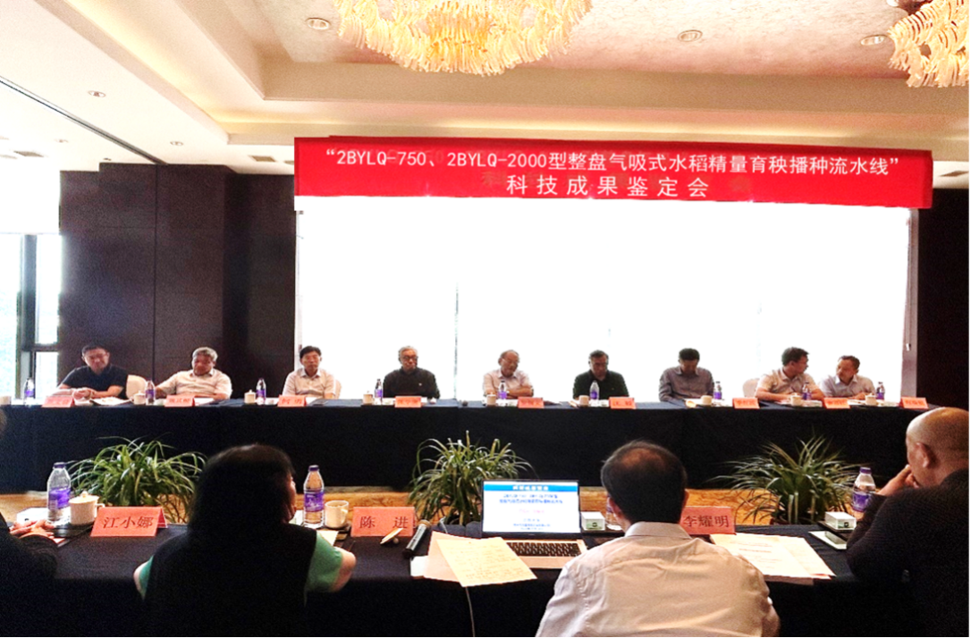 9月16日,中國機械工業(yè)聯合會在常州市主持召開科技成果鑒定會,由江蘇大學和常州市風雷精密機械有限公司共同完成的“2BYLQ-750、2BYLQ-2000型整盤氣吸式水稻精量育秧播種流水線”順利通過科技成果鑒定。