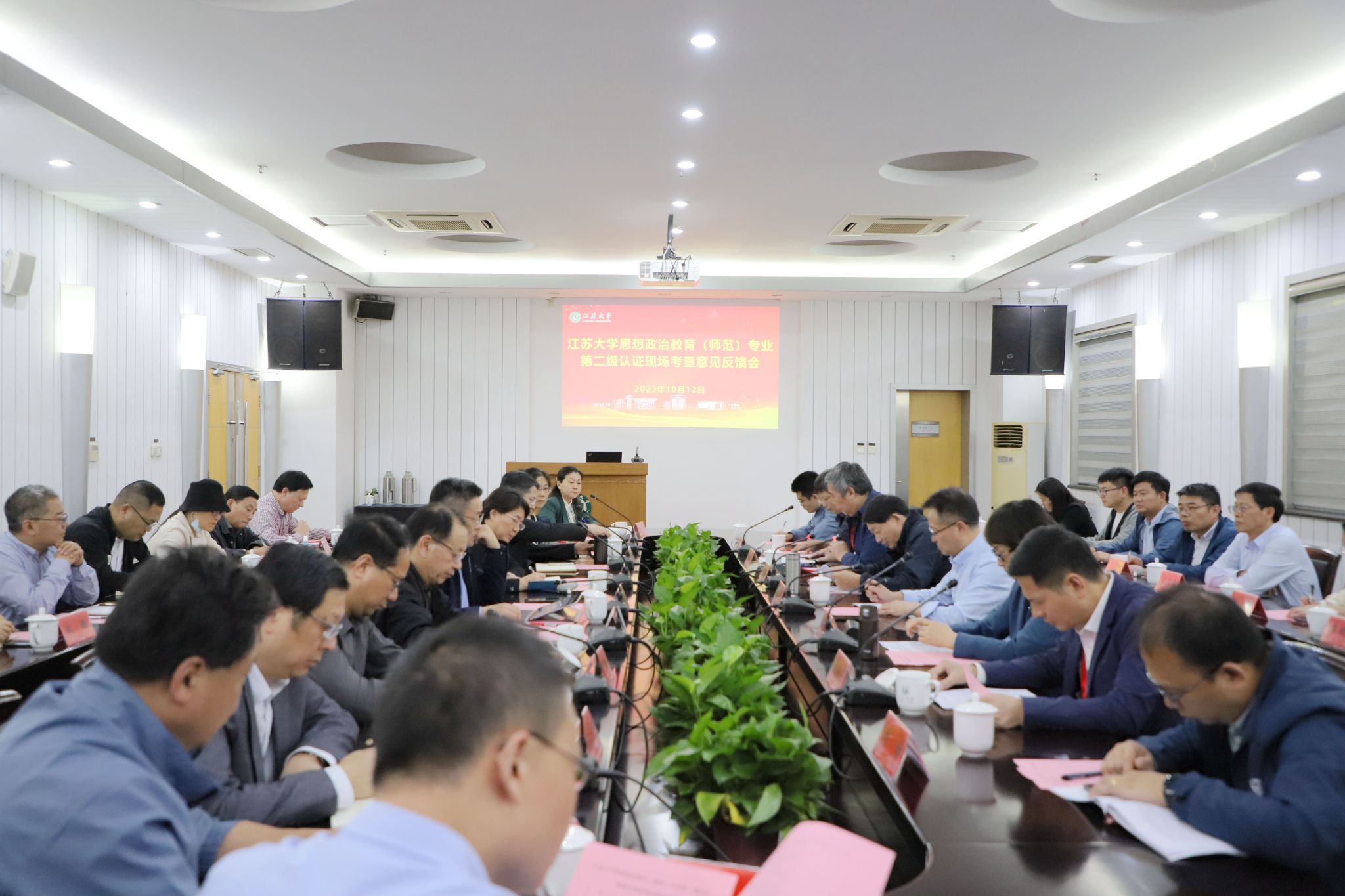 江蘇省教育評估院副院長吳立平講話,重點介紹了全省師范專業認證的總體情況,強調學校、學院要結合師范類專業認證和基礎教育教師隊伍建設的新要求,認證吸收和消化專家組反饋的意見和建議,做到以評促改、以評促建、以評促強,持續改進,追求卓越。考查意見反饋會由專家組副組長錢進主持。