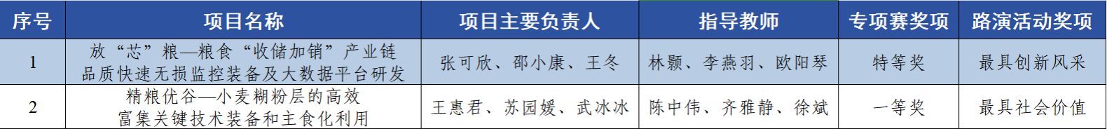 10月15日至16日,第十八屆“挑戰杯”競賽“揭榜掛帥”專項賽優秀成果轉化交流會暨高質量節糧減損創新方案路演在北京舉行。我校獲最具創新風采項目1項、最具社會價值項目1項,并與食芯資本初步達成合作協議。