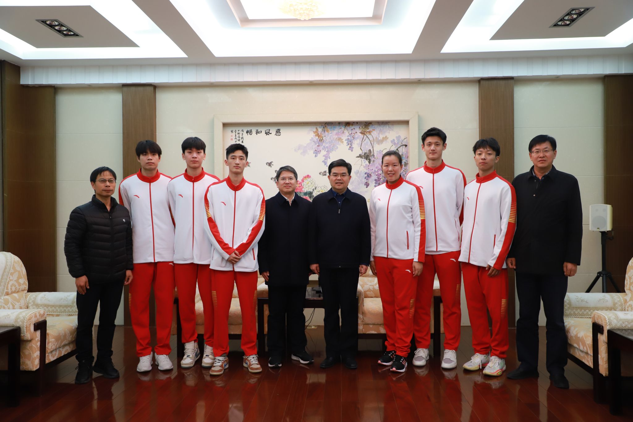 11月20日下午,校黨委書記李洪波,校黨委常委、副校長、校體工委主任鄒小波在行政一號樓會(huì)議室接見獲得第一屆全國學(xué)生(青年)運(yùn)動(dòng)會(huì)男排冠軍的我校教練員和運(yùn)動(dòng)員。