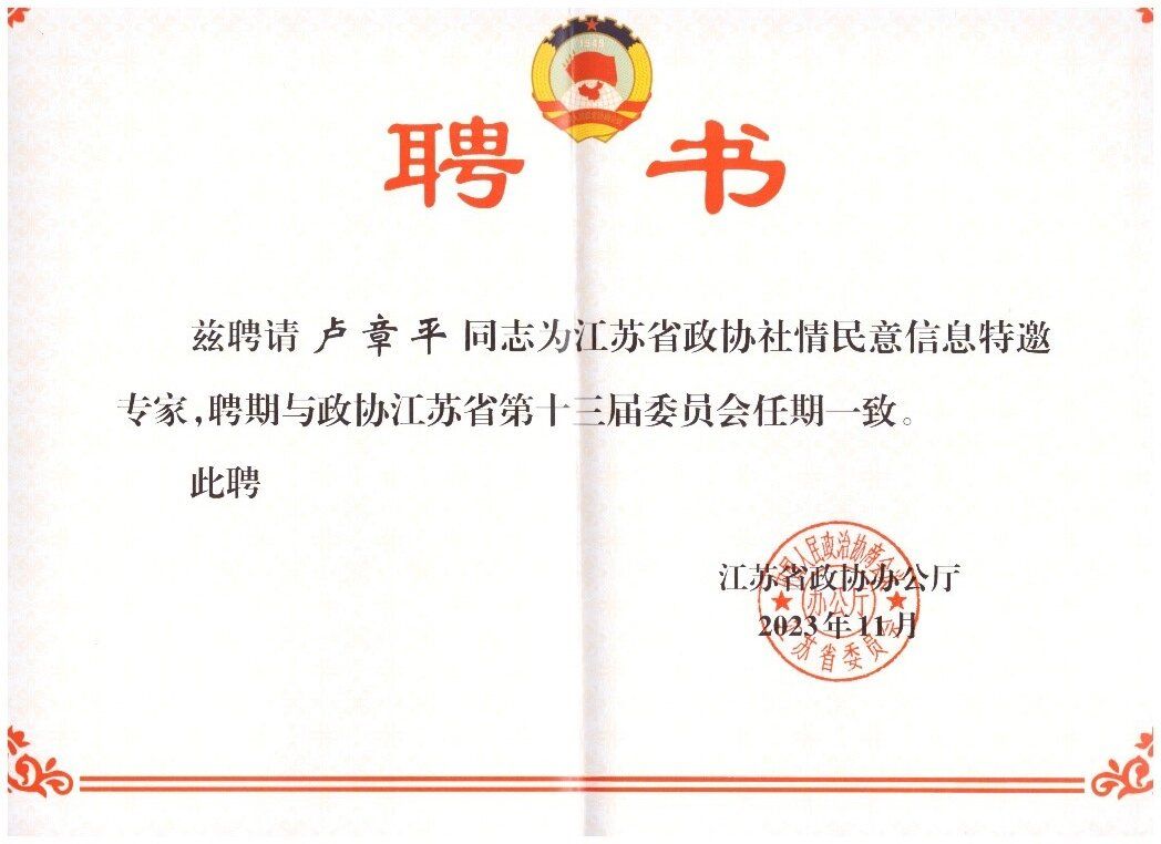為加強政協反映社情民意信息工作,近日,省政協首次面向社會相關領域聘請了20位社情民意信息特邀專家。我校致公黨黨員盧章平教授獲聘省政協社情民意信息特邀專家。