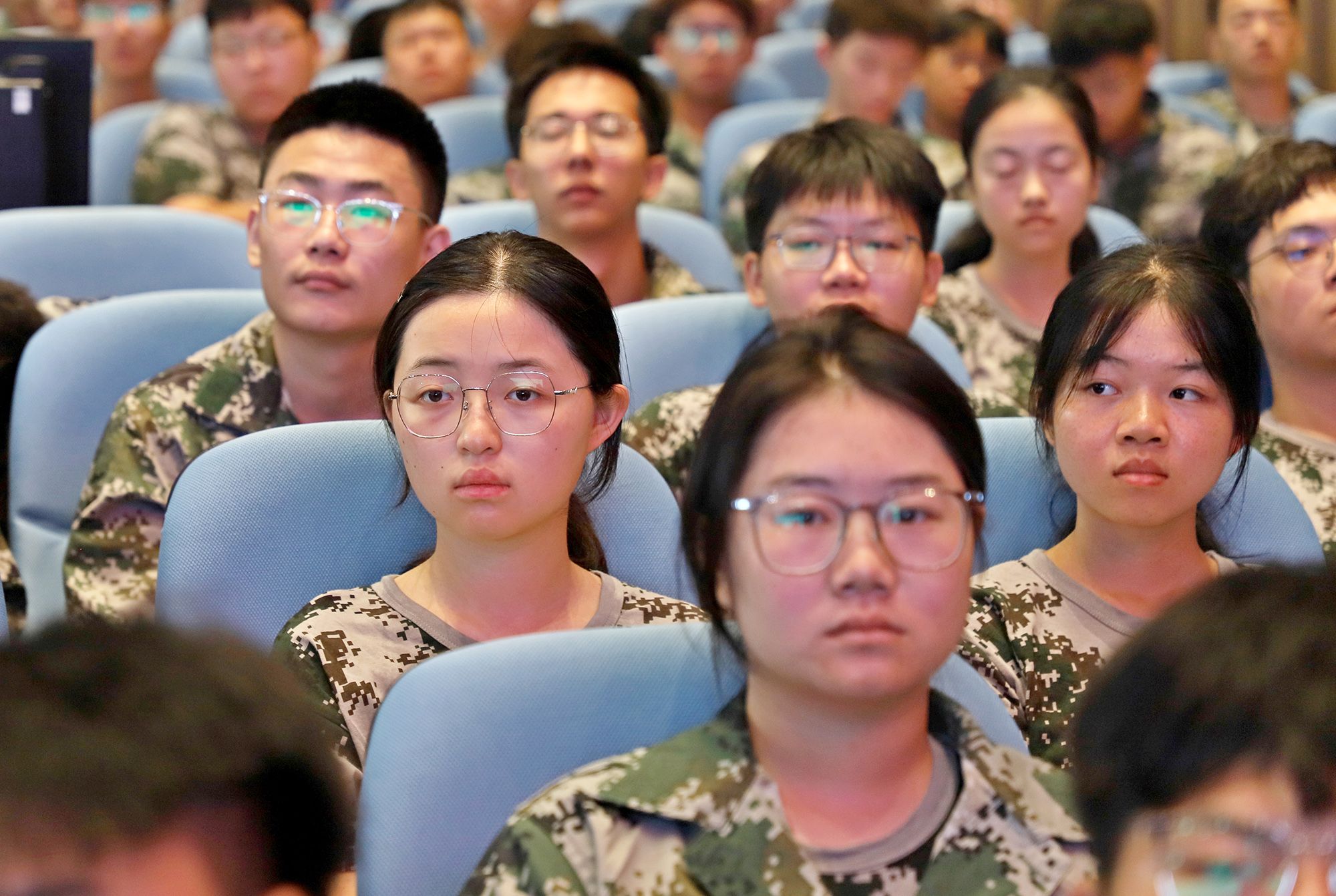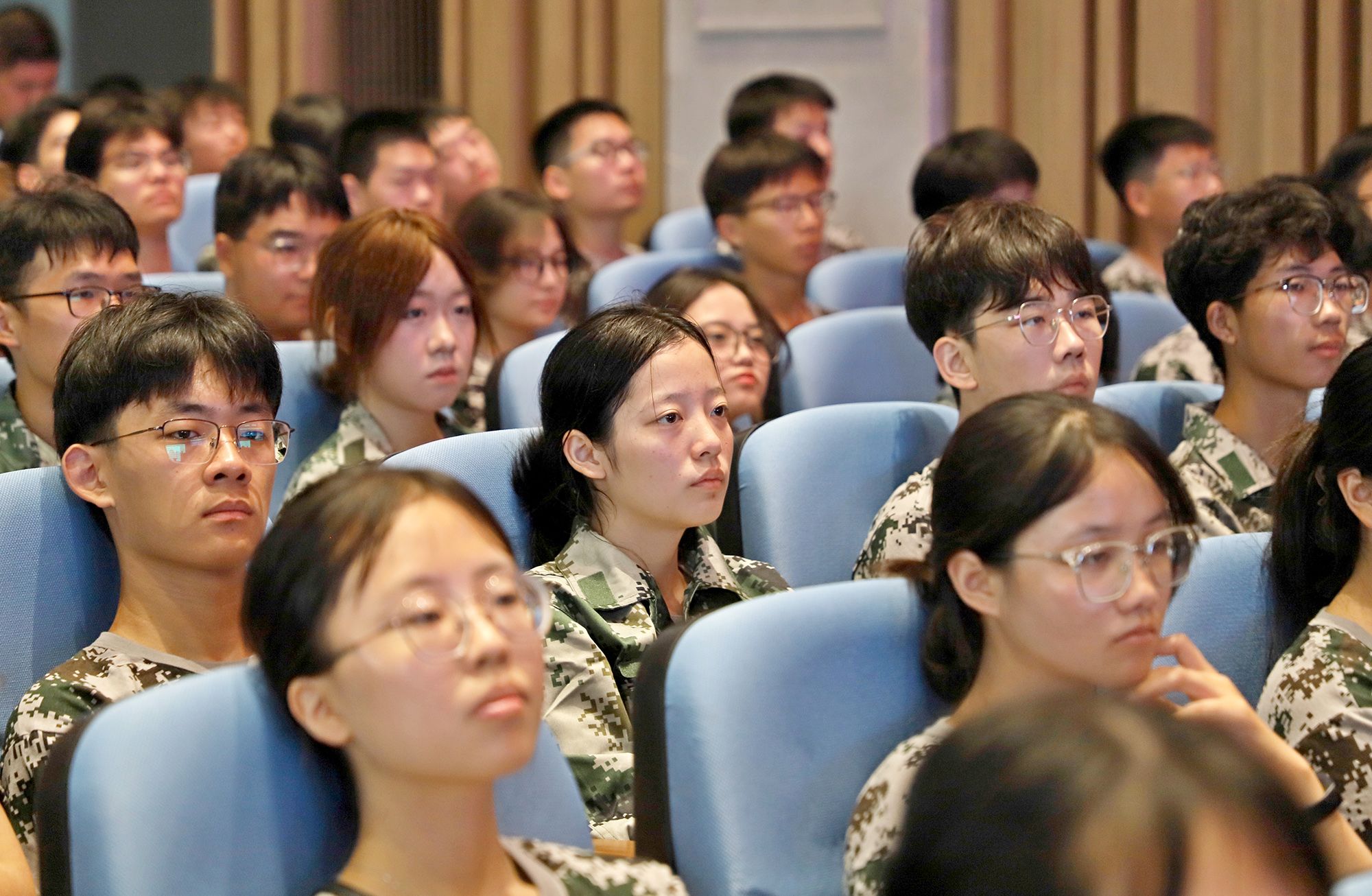 除部分本科新生代表和新生輔導員在大禮堂主課堂線下聽課外,江蘇大學官方微信視頻號對第一課進行了線上直播,其余本科新生及研究生新生線上聽課。(黨委宣傳部)