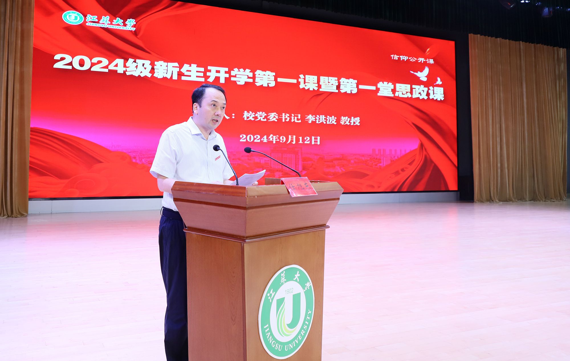 9月12日,學校舉辦2024級新生開學第一課暨第一堂思政課,引導新生更好地適應大學生活,幫助他們系好大學的“第一粒扣子”。校黨委書記李洪波以《揚帆啟航 筑夢江大 爭做有理想敢擔當能吃苦肯奮斗的新時代青年》為題,為全體新生授課。