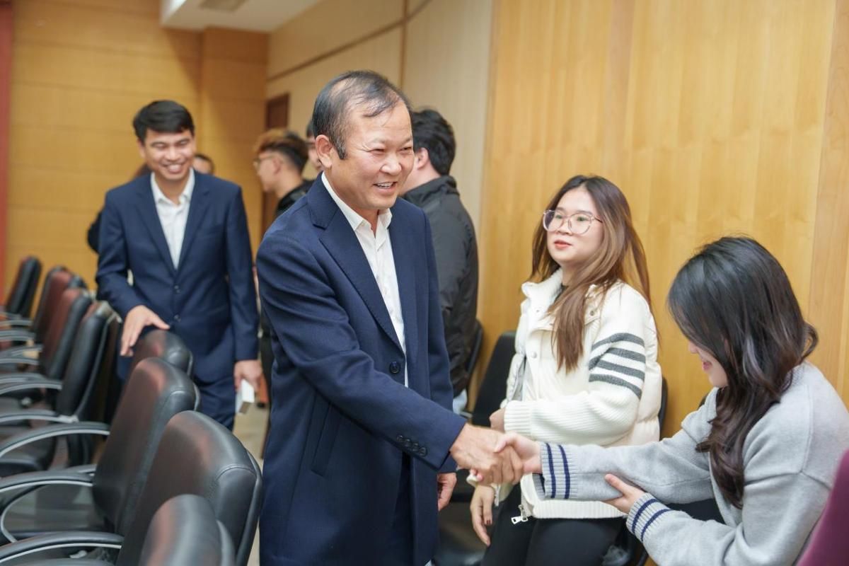 會談后,阮大量一行與江蘇大學越南籍留學生代表進行座談。留學生們分享了在校期間的學習與生活感悟,并表達了對學校支持與培養的感謝。代表團成員對留學生們的優秀表現給予肯定,勉勵他們學成后積極為中越友誼貢獻力量。