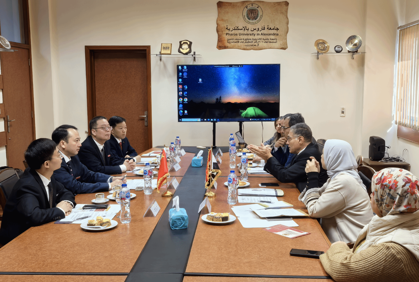在亞歷山大期間,代表團拜訪了中國駐亞歷山大總領事館,總領事楊易會見了代表團。任旭東簡要介紹了我校發展成果和與埃及高校合作情況。楊易介紹了埃及經濟、社會和教育發展等情況及埃及高校工作模式,鼓勵和支持我校與埃及高校加強合作,為構建新時代中埃命運共同體作出貢獻。