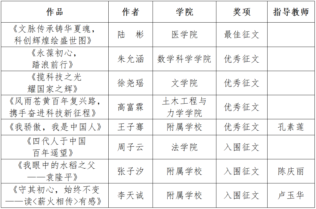 2024年,學校各二級關工委認真組織、積極開展《薪火相傳——傳承傳統文化,建設科技強國》和《我以祖國為榮》主題教育讀書征文活動,共提交征文3236篇。校關工委組織專家遴選優秀征文作品參加省教育系統關工委評選。獲獎作品內容豐富,主題鮮明,充分彰顯了深厚的愛國情懷和對科技強國建設的深刻理解。(關工委)