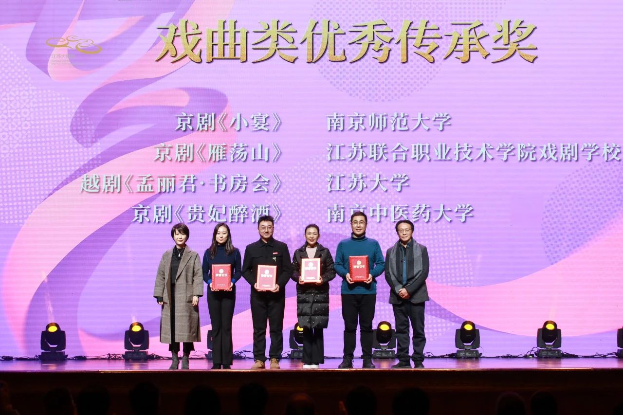 12月20日,2024江蘇省大學(xué)生戲劇展演活動(dòng)頒獎(jiǎng)儀式在江蘇大劇院舉行。由我校教師馮磊等指導(dǎo)的戲曲作品《孟麗君·書房會(huì)》《王龍亭》分別榮獲2024江蘇省大學(xué)生戲劇展演戲曲類優(yōu)秀傳承獎(jiǎng)和傳承獎(jiǎng),首次實(shí)現(xiàn)該項(xiàng)賽事全部獲獎(jiǎng)。