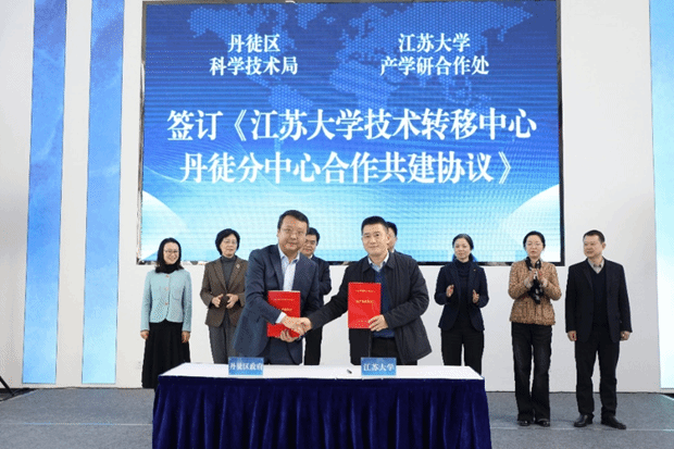 雙方共同為江蘇大學技術轉移中心丹徒分中心揭牌,簽署了《校地合作協議書》《江蘇大學技術轉移中心丹徒分中心合作共建協議》《共建新能源技術服務平臺協議》。