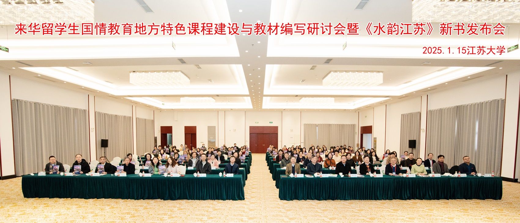 1月15日,由江蘇大學與上海外語教育出版社共同主辦的來華留學生國情教育地方特色課程建設與教材編寫研討會暨《水韻江蘇》新書發布會在青教公寓三江廳舉行。上海外語教育出版社社長丁毅、江蘇高等教育學會外國留學生管理委員會副秘書長兼秘書長張海軍,南京大學、上海交通大學教授程愛民及我校黨委宣傳部、教務處、文學院、外國語學院相關領導出席會議,來自全國21個省(自治區、直轄市)的百余名專家學者參加會議。