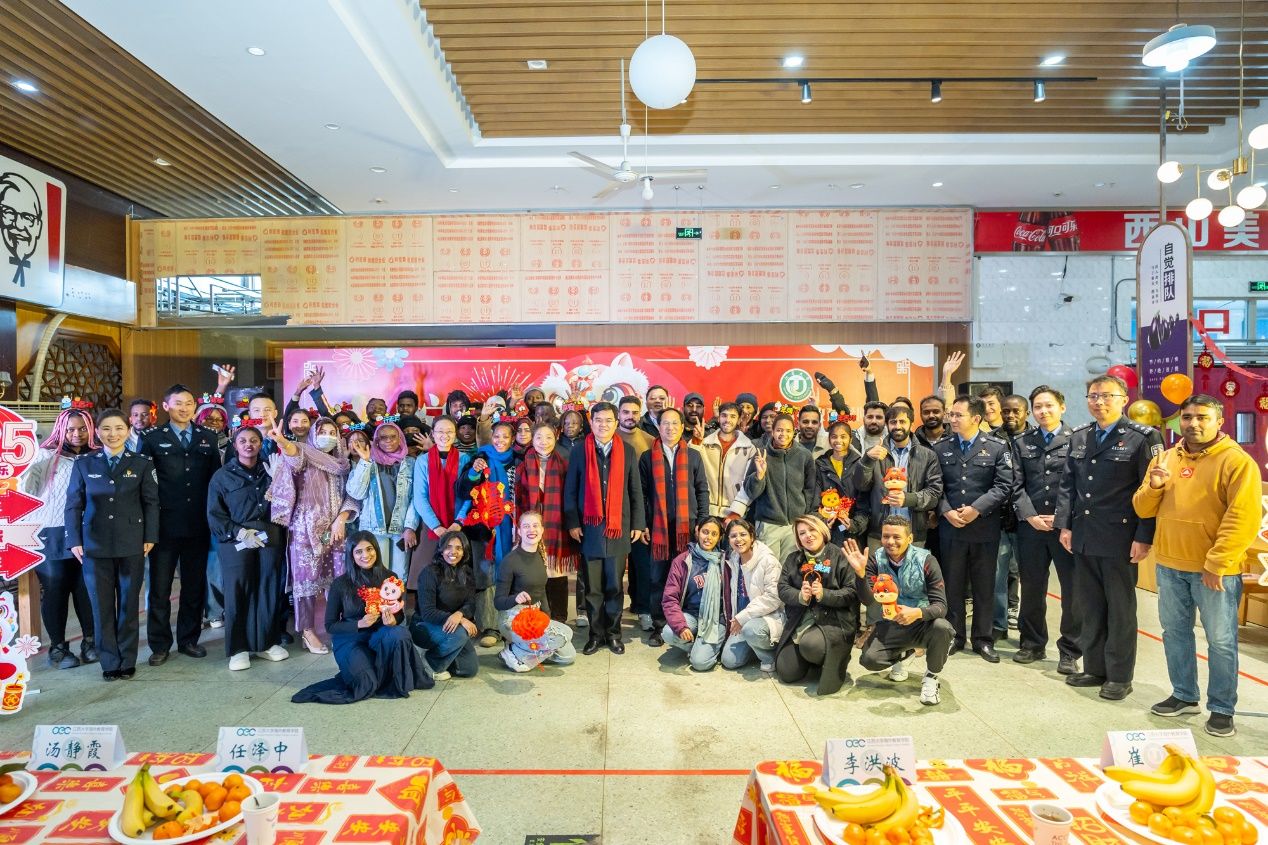 1月17日,2025年留學生春節聯歡會在西山美食城(五食堂)舉行。校黨委書記李洪波,學工處、國際處、關工委、海外教育學院等學校部門代表以及鎮江市公安局相關領導出席聯歡會,與400余名留學生共迎新春。