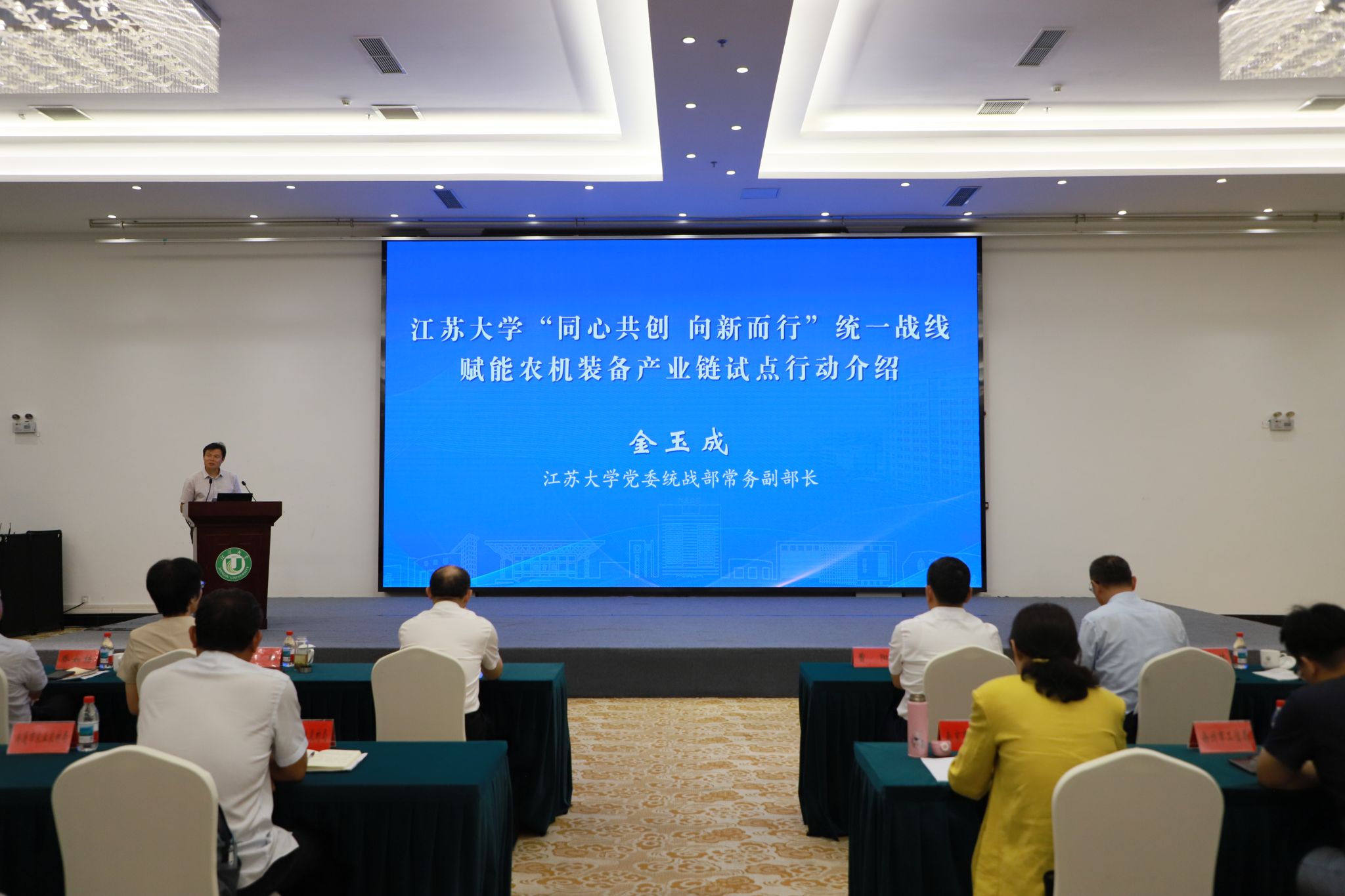 7月25日,江蘇大學“同心共創 向新而行”統一戰線賦能農機裝備產業鏈試點行動啟動會在江蘇省現代農機裝備產學研對接活動期間舉辦。省工信廳二級巡視員曹陽,校黨委副書記張濟建,校黨委常委、副校長李紅,省農業農村廳農機裝備處處長陸桂良,省工信廳裝備一處處長楊松林,省教育廳統群處四級調研員顧春鋒等領導出席活動。