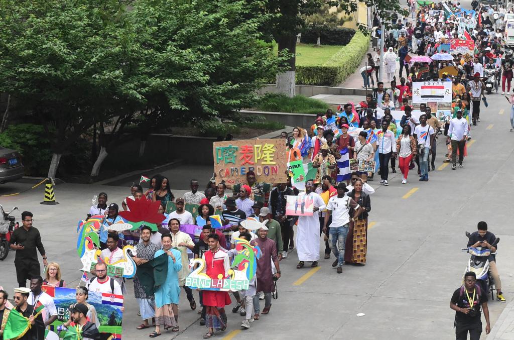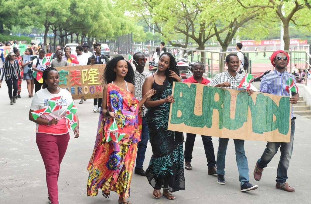 5月15日,我校來自45個國家的400多名中外學生參加了學校第九屆國際文化開幕式的預熱活動,中外學生手持本國國旗,以健步快走的形式展現各國的文化與風采。