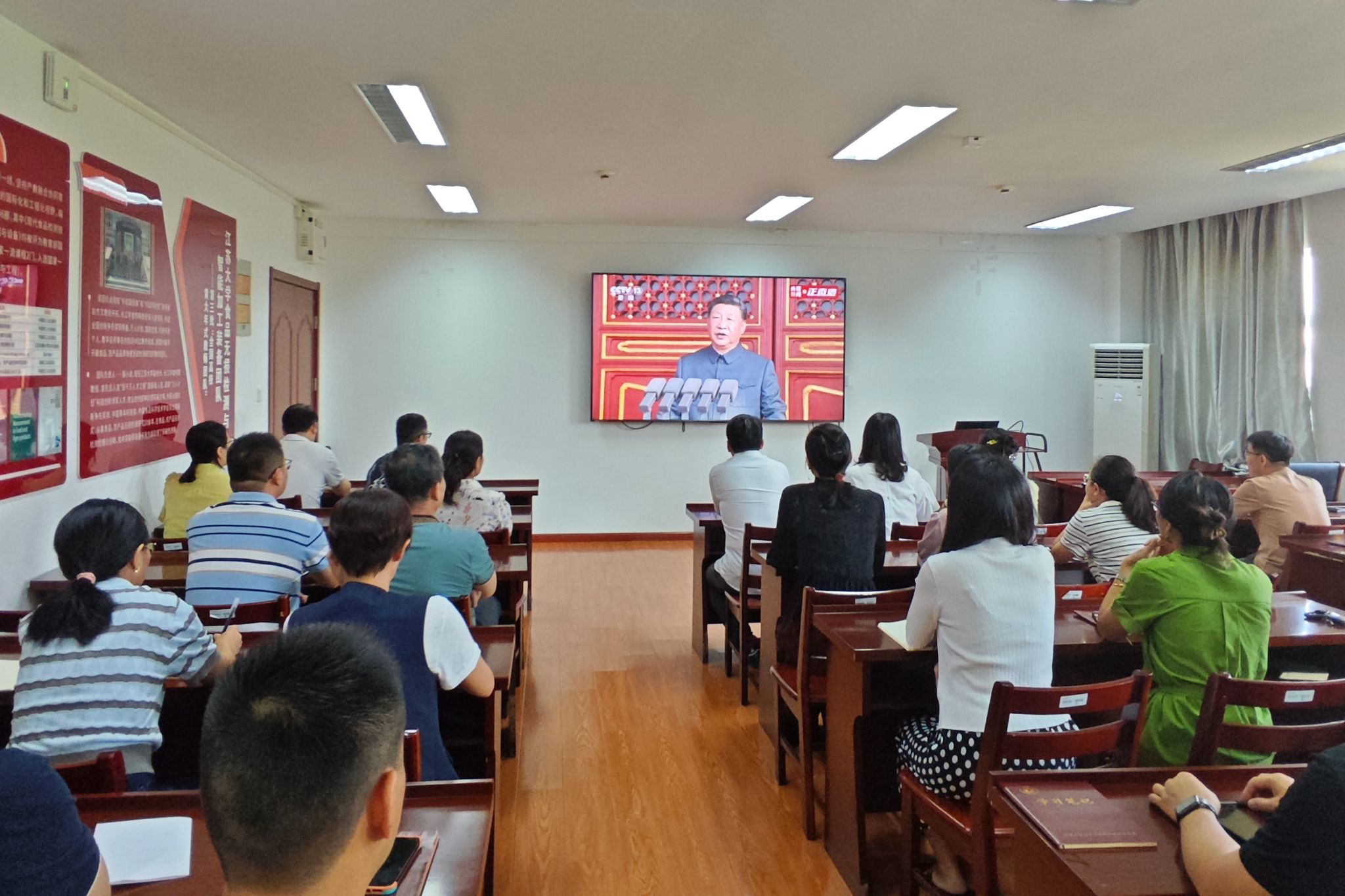 上午9時,大會正式開始。隨著莊嚴的國歌聲響起,主會場內師生全體起立,齊唱國歌。在聆聽習近平總書記重要講話時,現場師生神情肅穆,認真記錄;當受閱方(梯)隊經過天安門廣場時,收看現場不時響起熱烈掌聲。