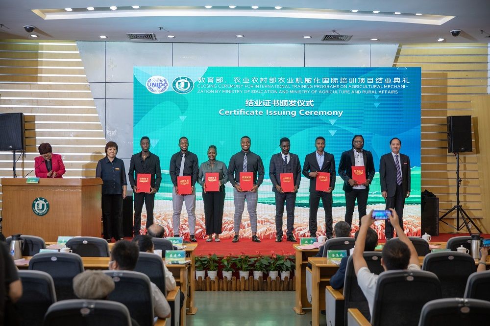 8月30日,2022教育部、農業農村部農業機械化國際培訓項目結業典禮在校會議中心第一報告廳舉行。在為期5個月的項目中,來自贊比亞、埃塞俄比亞、剛果、加納、尼日利亞、喀麥隆、埃及、巴基斯坦等非洲國家和亞太國家的123名學員,完成了涵蓋農作物從種到收、加工、儲存全部環節的培訓。