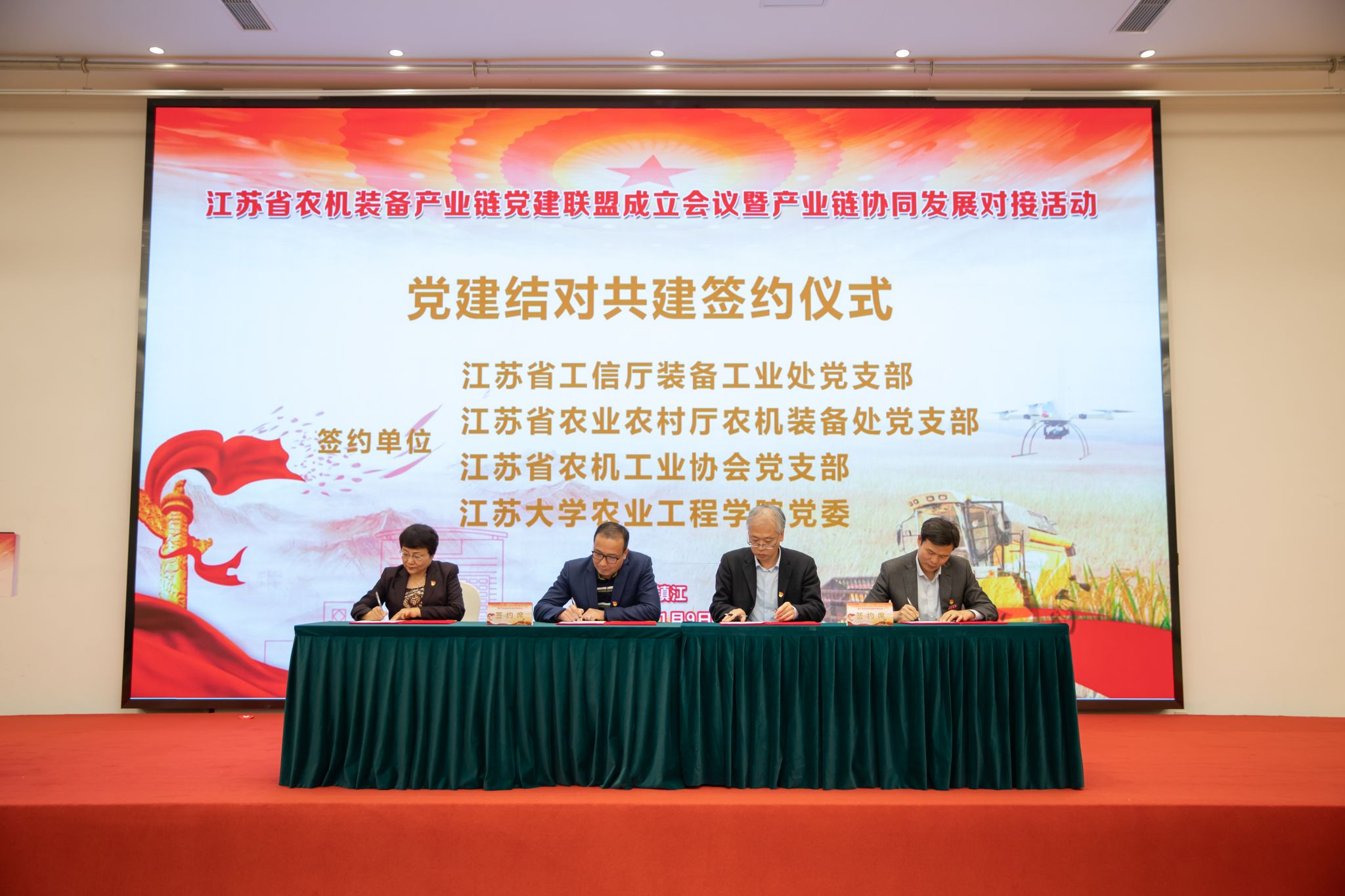 徐軍、周寶銀、袁壽其、顏曉紅共同啟動黨建聯盟成立程序。江蘇省農機裝備產業鏈黨建聯盟的成立,為高質量推動農機裝備產業鏈發展提供了新的平臺,對農機裝備補短板、提升產業鏈韌性和安全水平,促進政產學研用協同發展具有重要作用。