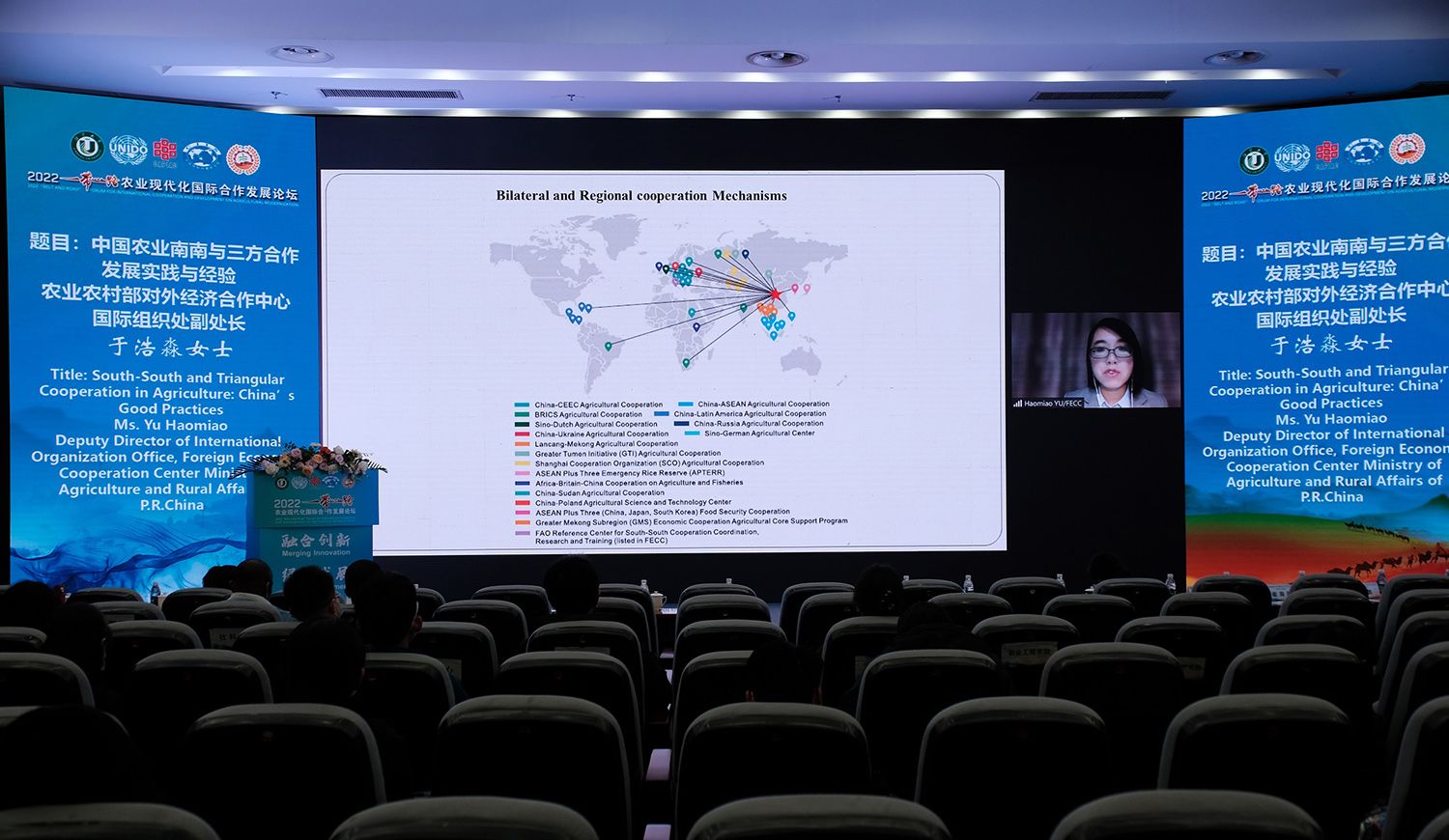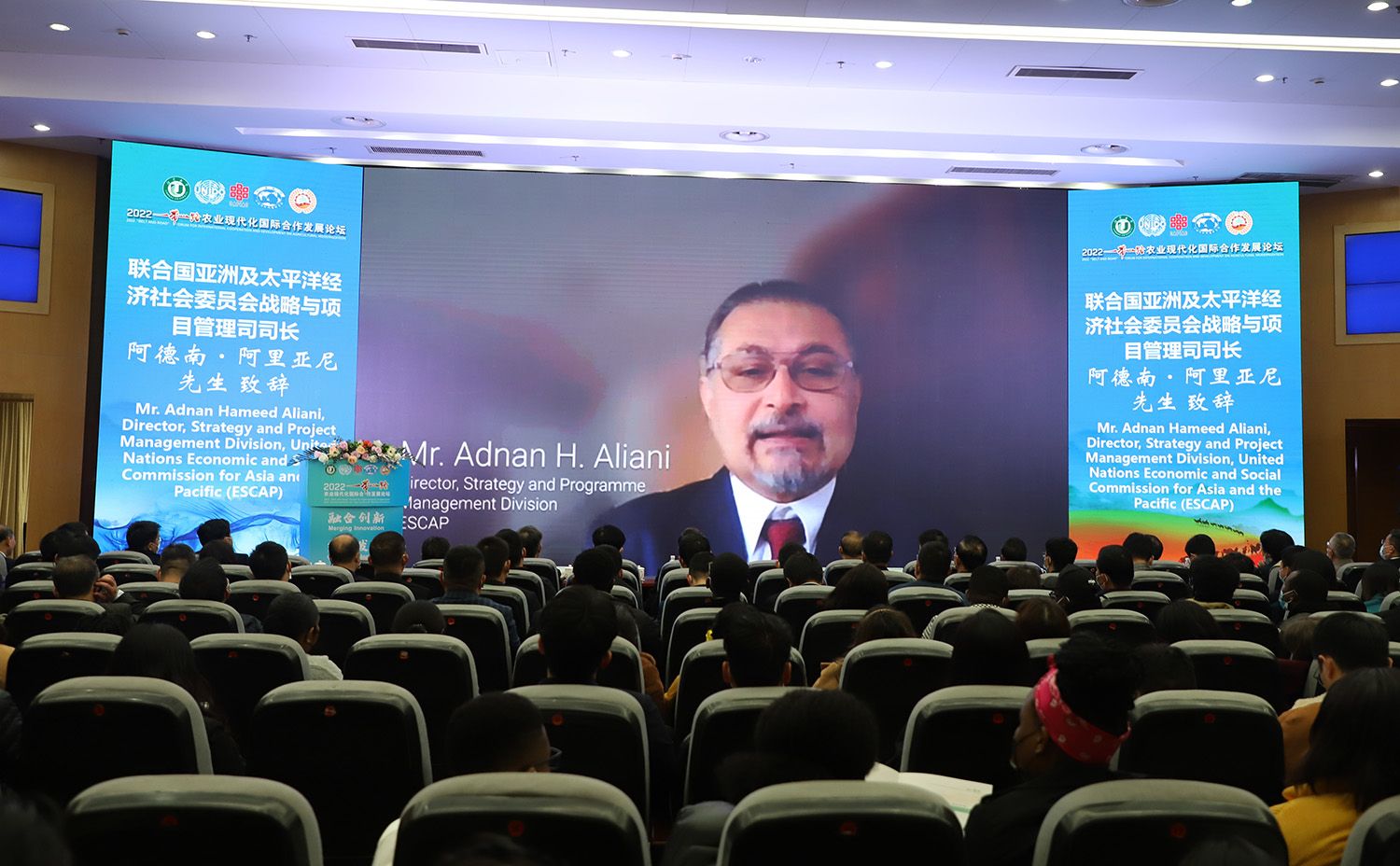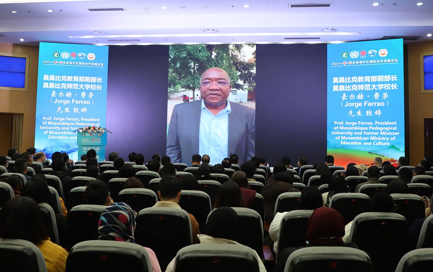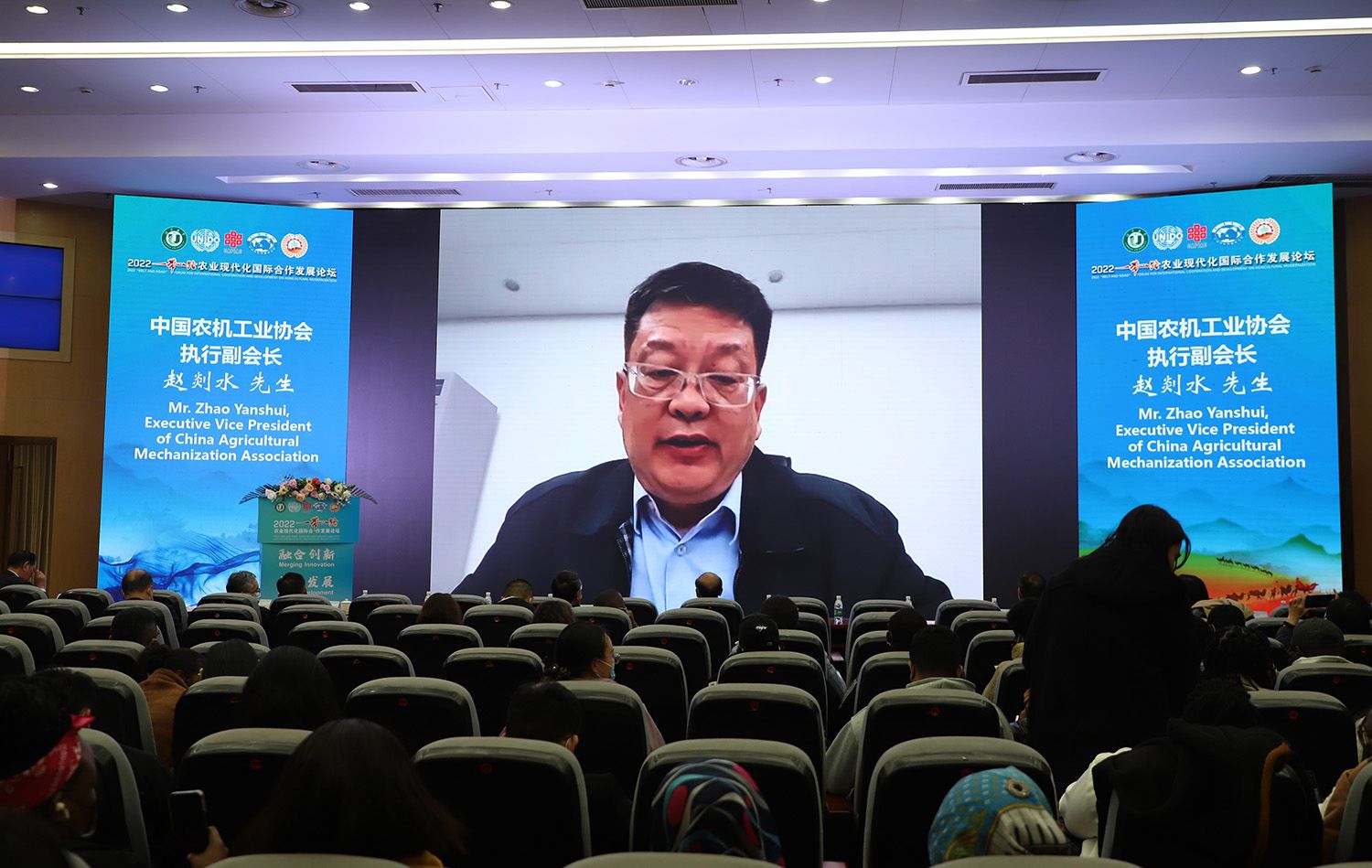 中國農業國際合作促進會會長許國成、中國農業機械工業協會執行副會長趙剡水、中國國際發展知識中心副主任蔣希蘅、中國教育國際交流協會副秘書長安延、中國農業機械化協會副秘書長夏明、中國農業科學院海外中心副主任聶鳳英、農業農村部對外經濟合作中心國際組織處副處長于浩淼、中國商業股份制企業經濟聯合會國際文化教育交流促進工作委員會主任鄒海、中國國際科技促進會常務理事邢紀國;以及聯合國糧農組織駐華代表文康農,聯合國糧農組織植物生產與保護司司長夏敬源,聯合國工業發展組織農業司司長德耶內·泰澤拉,聯合國亞洲及太平洋經濟社會委員會戰略與項目管理司司長阿德南·阿里亞尼,聯合國可持續農業機械化中心副主任安書曼,世界糧食計劃署中國辦公室南南合作主管賈焰,巴基斯坦國家農業研究委員會主席古蘭·穆罕穆德·阿里尼,波黑塞族共和國農林水利部部長鮑里斯·帕沙里奇,莫桑比克教育部前部長、莫桑比克師范大學校長豪爾赫·費勞,尼泊爾跨喜馬拉雅友好協會主席拉吉姆·庫瑪·賈哈,加納蘇尼亞尼能源與自然資源大學校長埃爾維斯·阿薩雷·比迪亞高,波黑塞族共和國巴尼亞盧卡大學副校長米羅斯拉夫·馬利諾維奇等國內國際嘉賓線上出席論壇。