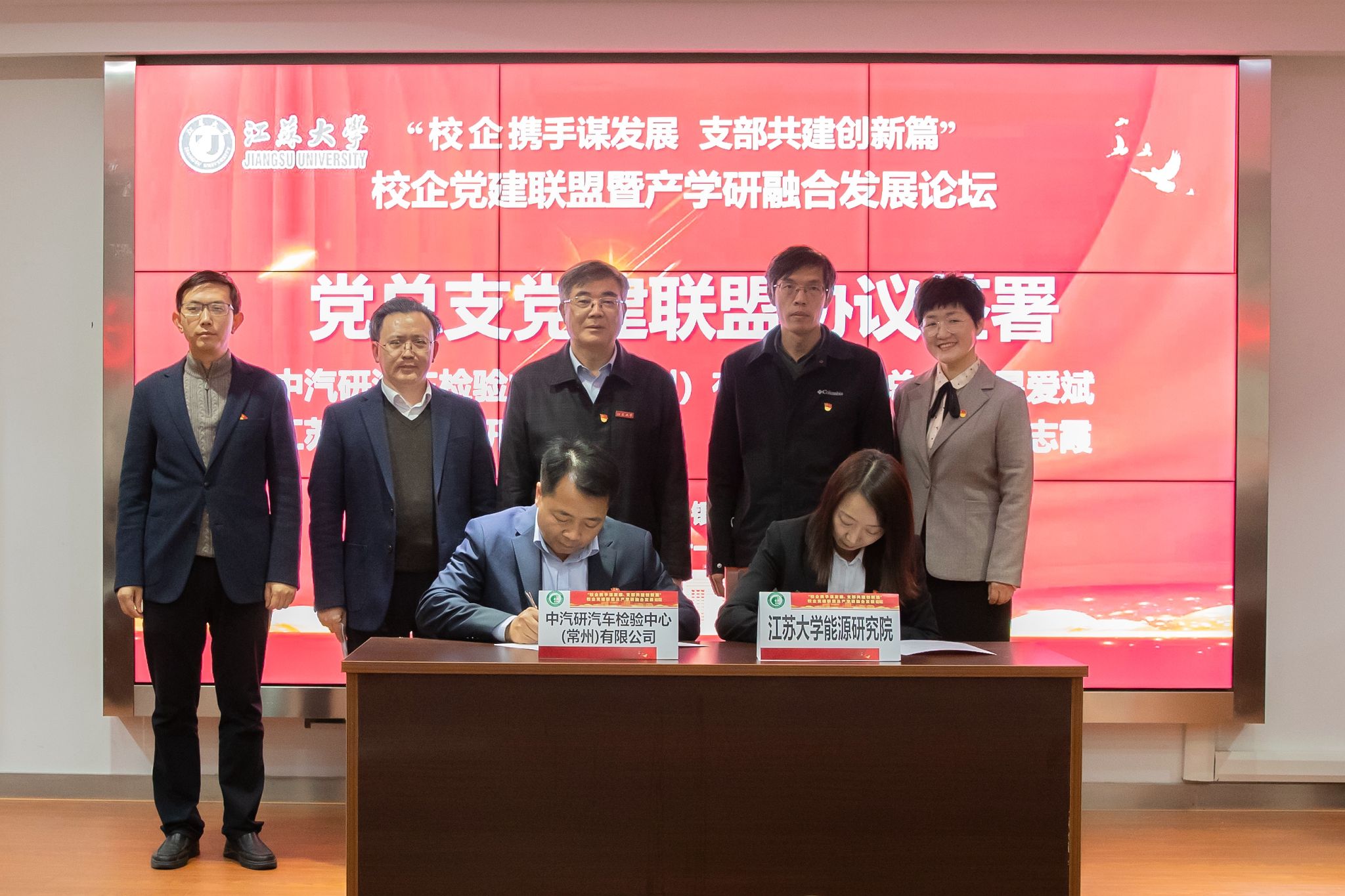 論壇上,能源研究院黨總支與中汽研汽車(chē)檢驗(yàn)中心(常州)有限公司黨總支簽署了黨建聯(lián)盟共建協(xié)議。能源研究院黨總支下屬三個(gè)教工黨支部分別和專(zhuān)業(yè)對(duì)口的企業(yè)簽署了支部共建協(xié)議。