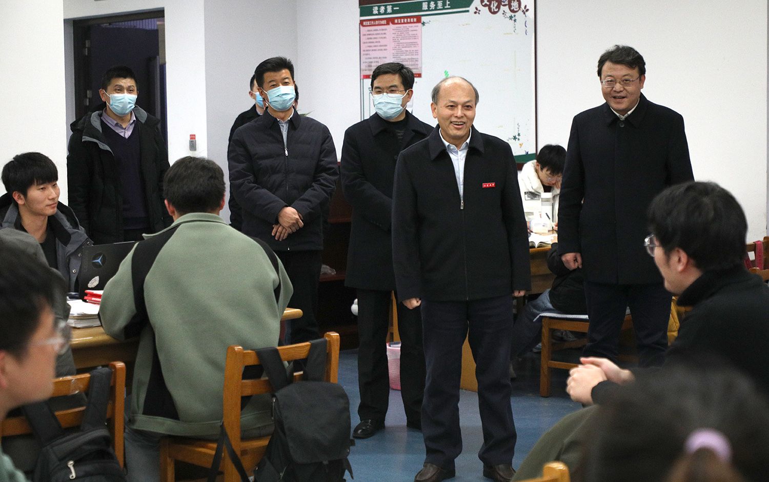 12月7日晚,校長顏曉紅、校黨委副書記李洪波一行走進圖書館,看望慰問考研學生。