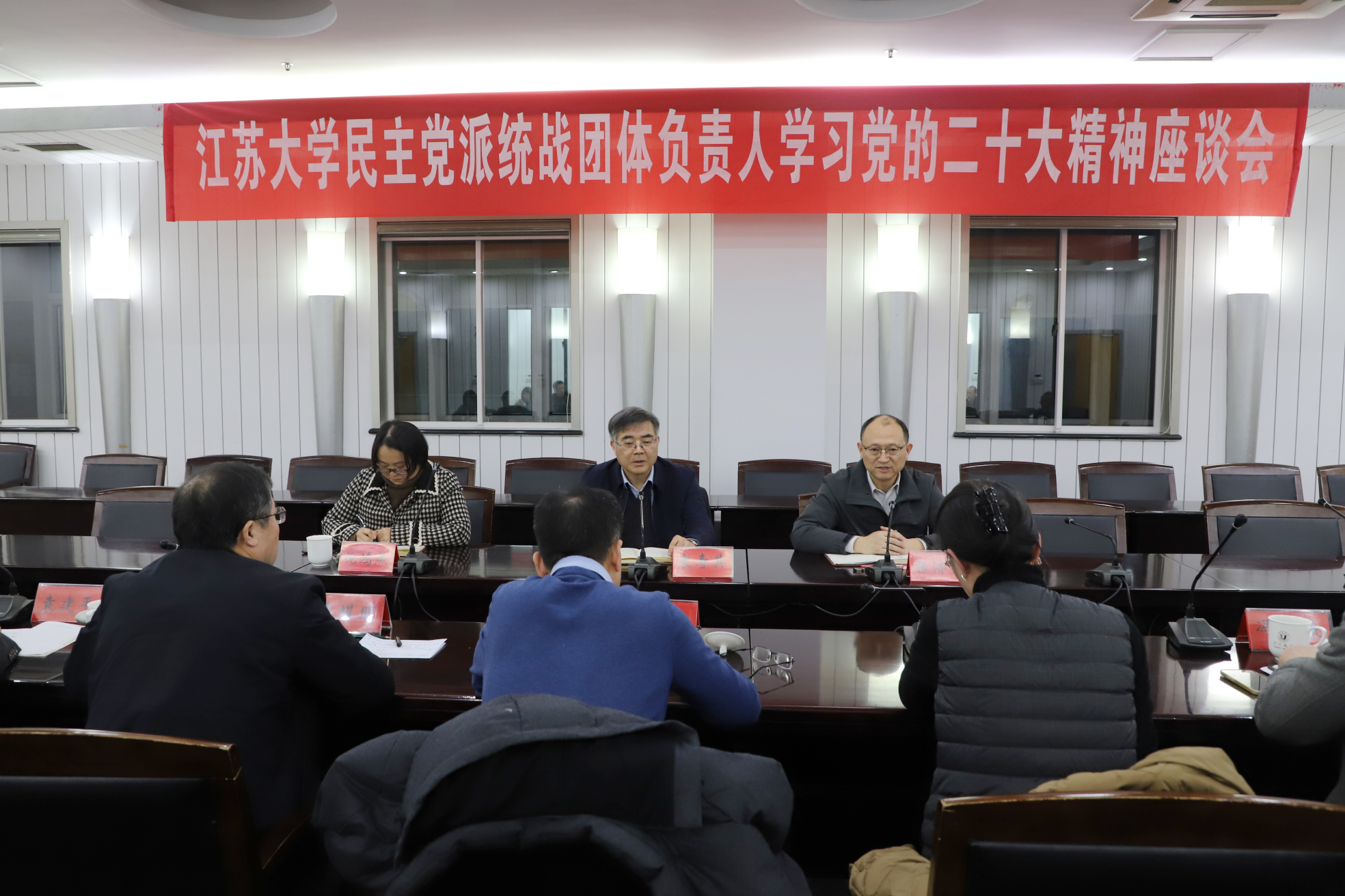 會上,各民主黨派統戰團體負責人就學習中共二十大精神心得體會進行了深入交流。民革江大總支主委周宏圖表示,民革江大總支全體黨員要將學習宣傳貫徹中共二十大精神作為當前和今后一個時期的首要政治任務,大力加強自身建設,提高履職本領,圍繞中共二十大確定的目標任務積極建言資政,愛崗敬業、扎實工作。民盟江大委員會主委袁建平表示,作為高校教師,要以國家級平臺內涵式發展為引領,瞄準流體行業國家重大戰略需求,以市場需求為導向,加強產學研合作和科研創新,在南水北調后續工程建設、智慧灌溉裝備與技術、深海資源開采、新一代核電軍工等領域開展技術攻關,服務國家重大戰略需求,助力實現中國式現代化。民建江大支部副主委田剛認為中國式現代化的提出凸顯了我國的責任擔當,今后將積極整合民建會員的學科特長,為企業低碳轉型和地方高質量發展獻計獻策。民進江大支部主委李耀明認為,中共二十大報告強調了教育、科技、人才是全面建設社會主義現代化國家的基礎性、戰略性支撐,作為高校教師,要立足新時代國家需求,堅持立德樹人根本任務,積極推進協同創新,把論文寫在大地上,為學校和地方發展出力,為中國式現代化育才。農工黨江大基層委員會主委陳元平表示,將積極學習貫徹中共二十大精神,大力發揚理論聯系實際的學風,心系全局,求真務實,開拓進取,為全面建設社會主義現代化國家和實現中華民族偉大復興貢獻應有力量。致公黨江大總支主委張文莉說,報告對“兩個結合”以及中華優秀文化的創造性轉化和創新性發展作了科學論述,今后將積極推動中華優秀傳統文化數字化傳承創新,堅持古為今用、推陳出新,助力鑄就社會主義文化新輝煌。九三學社江大委員會主委馮春來表示,將大力推進學科交叉、協同創新,形成以教育為基礎,人才培養為目標,學科交叉為抓手的新范式;積極建言獻策,民主協商,當好“全過程人民民主”踐行者;繼續打造“九三大講堂”科普品牌,為提升人民群眾健康科學素養,養成文明健康生活方式貢獻力量。校僑聯主席邵學軍表示,作為高校僑界工作者,將在今后的工作中切實學習貫徹中共二十大精神,立足“大僑務”工作格局,凝聚僑心、匯聚僑力,同心共筑中國夢。校歐美同學會會長施偉東說,將把中共二十大精神學習與實踐相結合,更好發揮校歐美同學會“留學報國人才庫、建言獻策智囊團、民間外交生力軍”作用,講好中國故事、傳播好中國聲音,充分發揮留學人員國際視野廣闊、智力密集、學科領域覆蓋面廣泛等優勢,為擴大國際科技交流合作、加強國際化科研環境建設提供交流平臺。校黨外知識分子聯誼會副會長唐淳表示,作為無黨派人士,將深入領會中共二十大精神的核心要義,不斷增強思想自覺和行動自覺,努力鉆研,發揮專長,助力推動國家經濟振興和科技高質量發展。