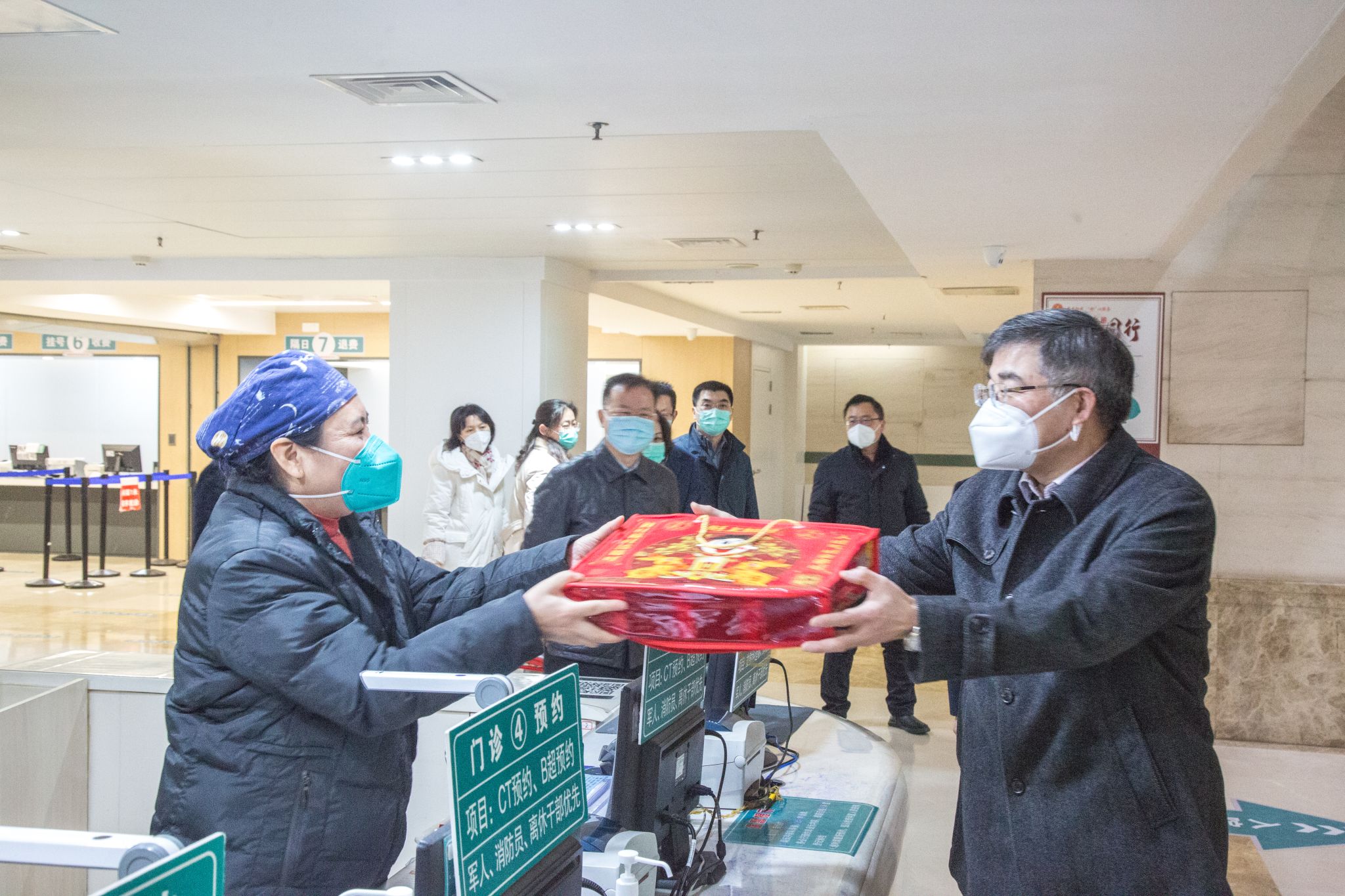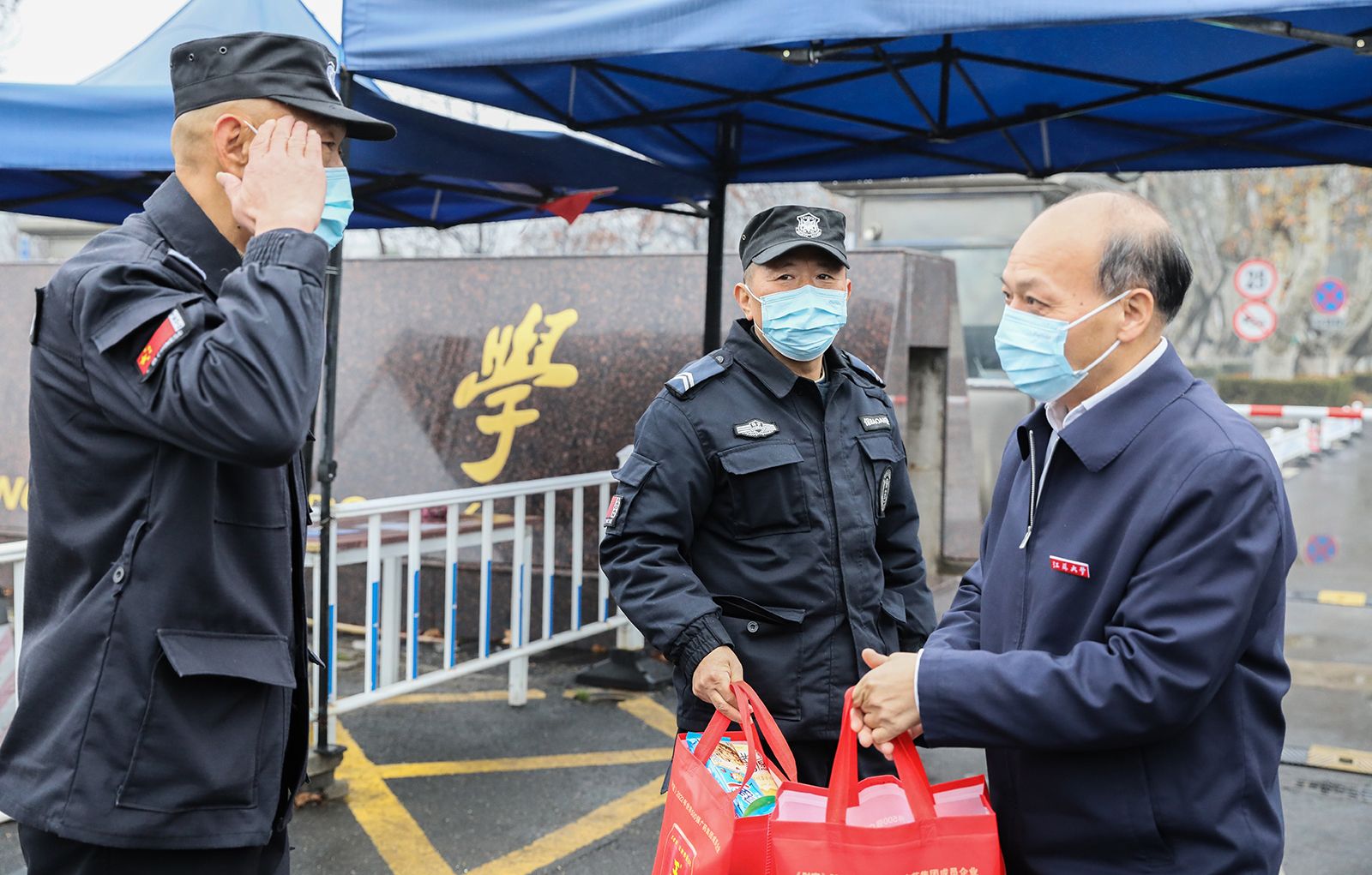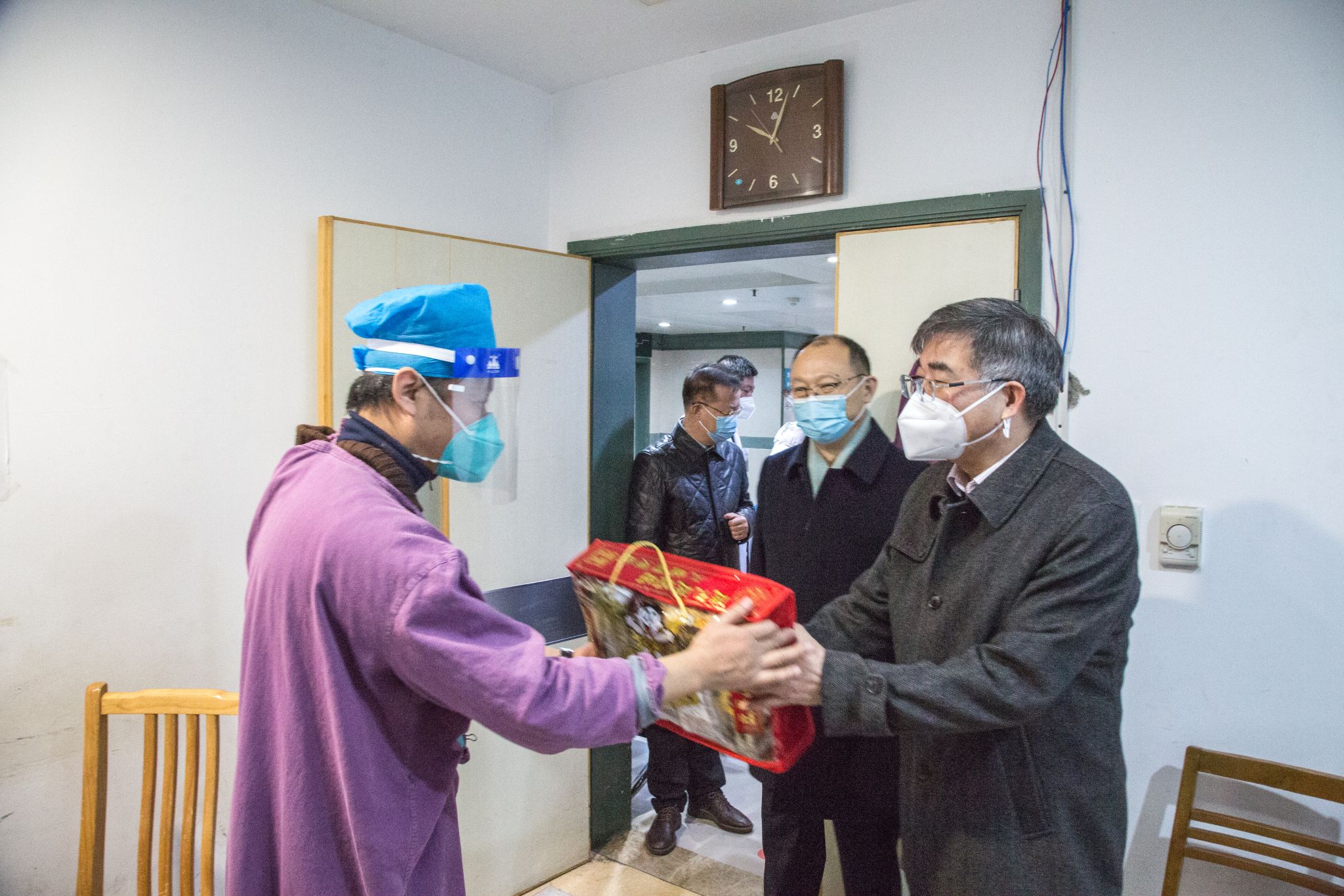 寅虎辭舊歲,卯兔迎新春。1月22日上午,農歷兔年大年初一,校黨委書記袁壽其,校黨委常委、副校長、院黨委書記張濟建,來到附屬醫院看望慰問春節期間堅守在門診一站式服務臺、急診中心、檢驗、藥房等一線崗位的醫務人員,送去新春的問候和真摯的祝福,感謝他們默默無聞的無私奉獻,希望他們注意身體,認真值守,確保春節期間的醫療保障服務安全有序運轉,以實際行動為廣大人民群眾健康保駕護航。