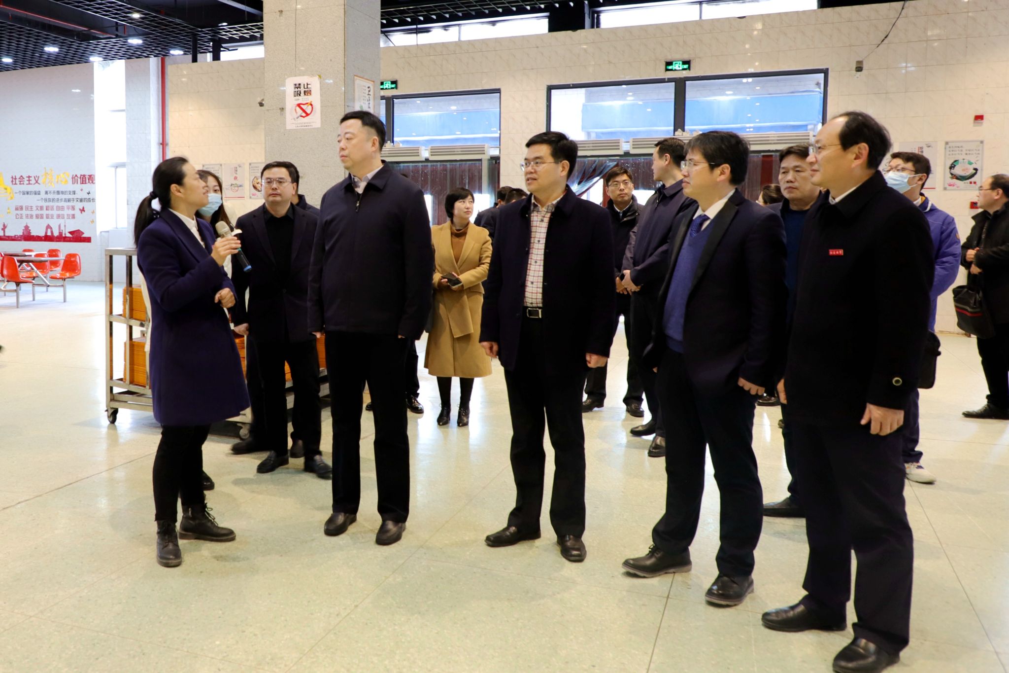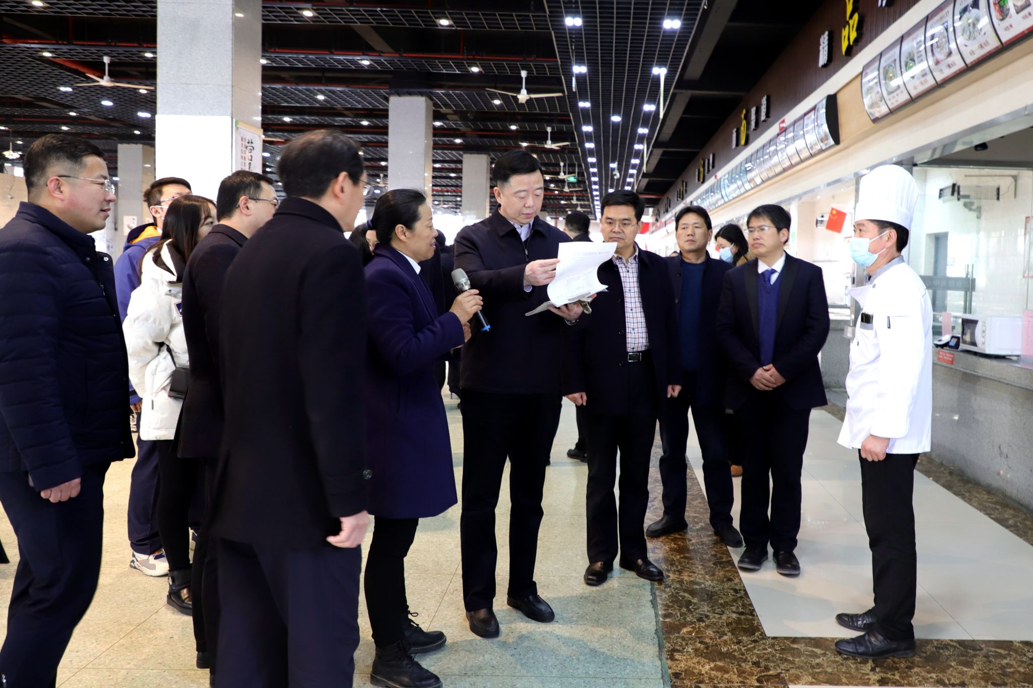 秦海濤一行來到第四食堂,實地檢查食堂大廳、蔬菜加工間、副食庫、原料驗收區、冰箱專間等區域,重點關注我校食堂日常食品安全的管理和監督工作,詳細了解了食堂應急預案細化流程的工作做法、“兩個責任”細化分工安排等工作。