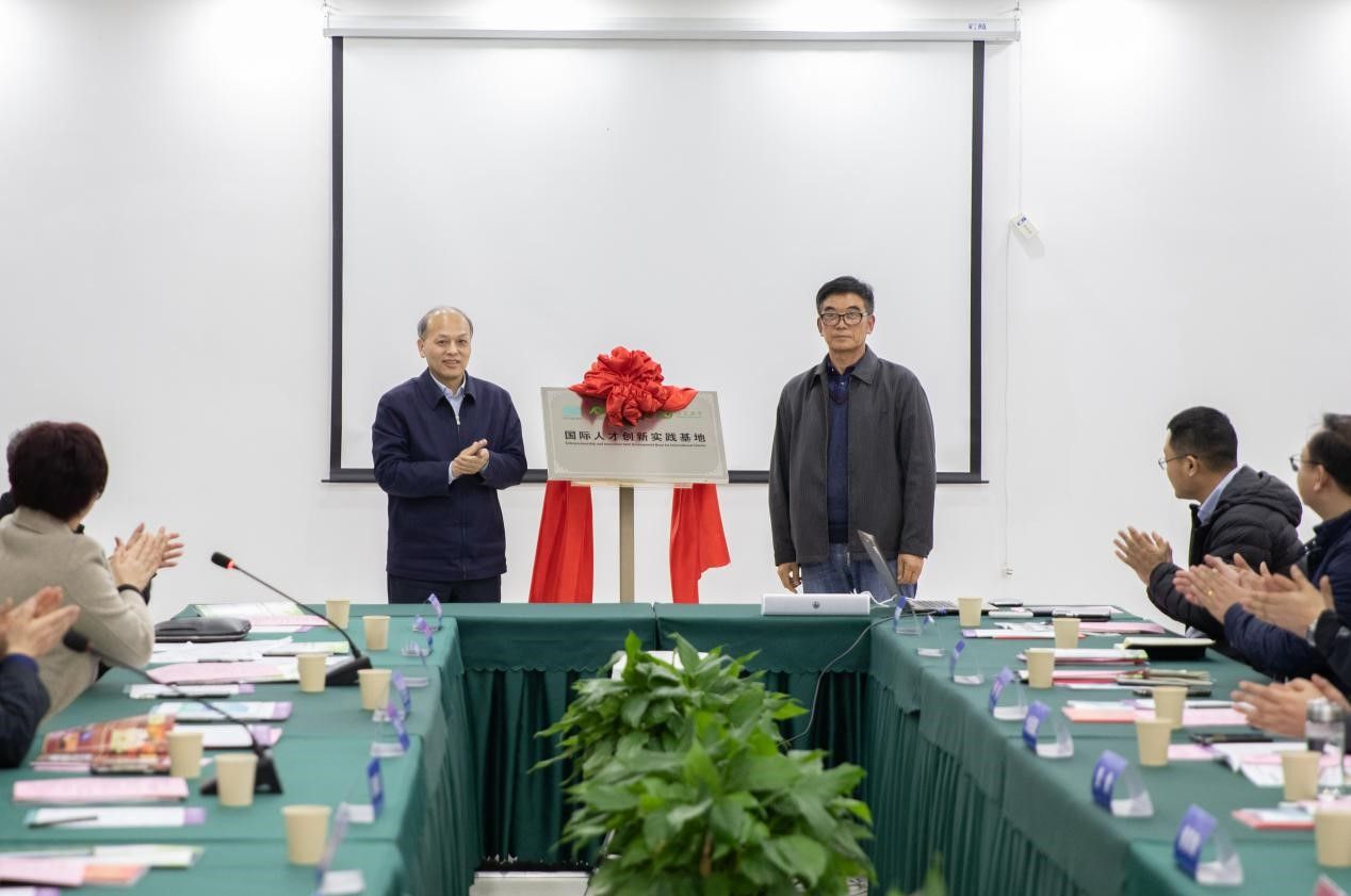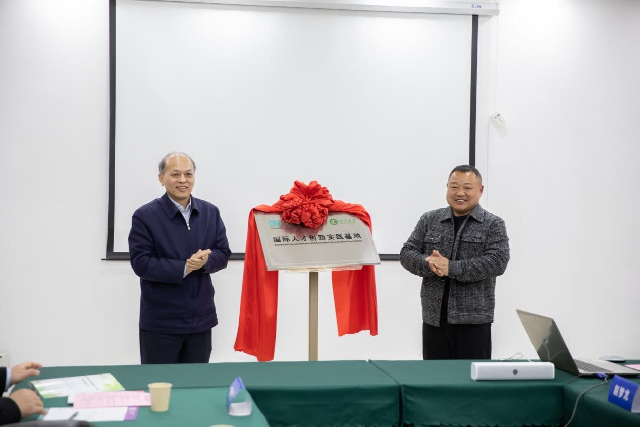 會上,姜其瑜和謝濤對各自企業的特色進行介紹,顏曉紅分別與兩位企業代表為“國際人才創新實踐基地”揭牌。