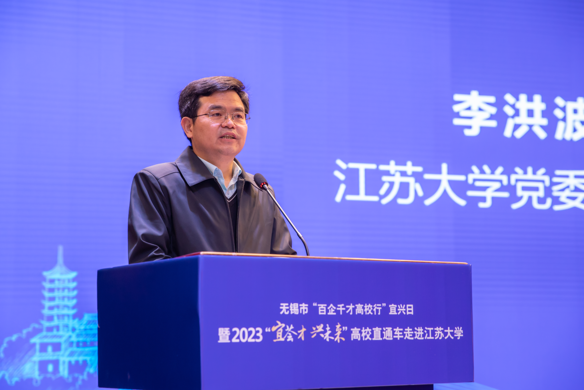 李洪波在致辭中向參加活動的宜興市政府部門和企業代表介紹了學校事業發展情況,表示學校將以此次活動為契機,積極發揮在人才、科技、創新等方面的資源優勢,打造集人才培養、科學研究、社會服務為一體的全方位、全天候的交流合作平臺,不斷拓展學校與宜興市合作空間,為校政企全面合作按下“快進鍵”、搭建“直通車”、駛入“快車道”,跑出聚力攻堅促就業的“加速度”。