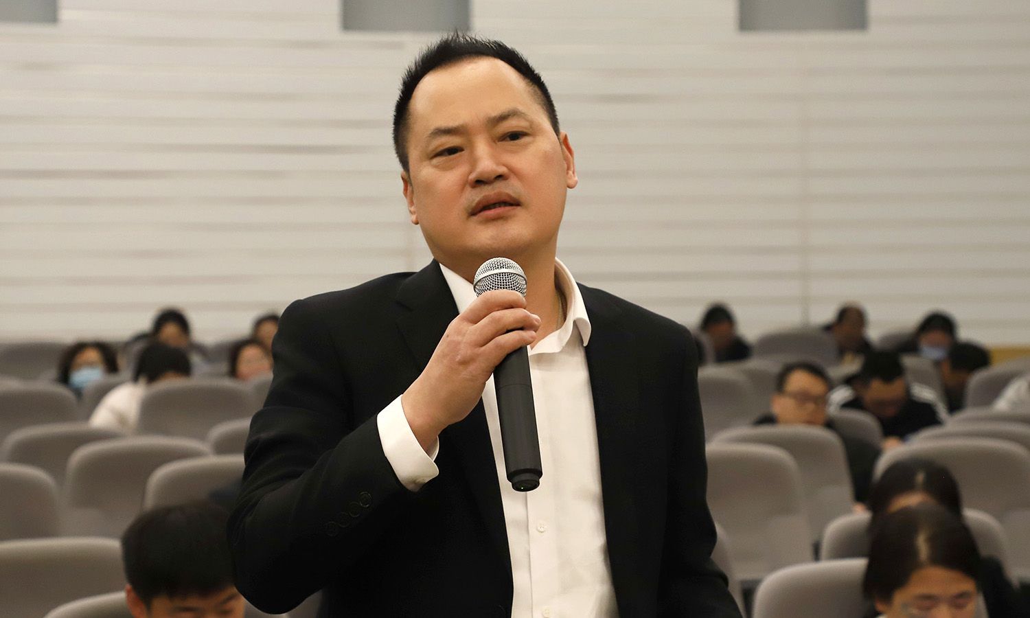 在自由提問環(huán)節(jié),參加活動(dòng)的領(lǐng)導(dǎo)和老師圍繞拓展辦學(xué)資源、國際合作辦學(xué)、科研機(jī)構(gòu)高質(zhì)量發(fā)展、重點(diǎn)實(shí)驗(yàn)室建設(shè)、校內(nèi)綜合考核等方面提問,顏曉紅、李洪波與他們面對(duì)面交流,現(xiàn)場進(jìn)行了回答。