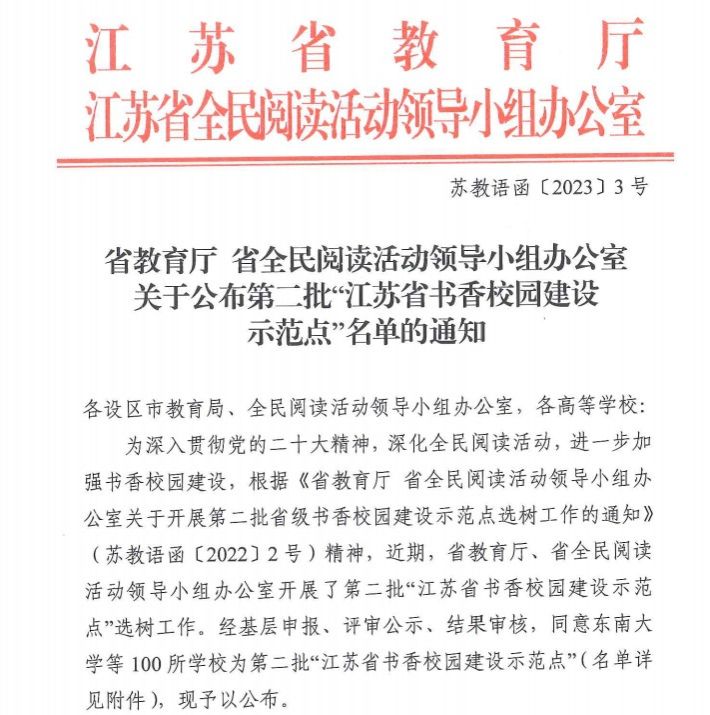 日前,江蘇省教育廳公布了第二批“江蘇省書香校園建設(shè)示范點”名單,江蘇大學(xué)成功入選。