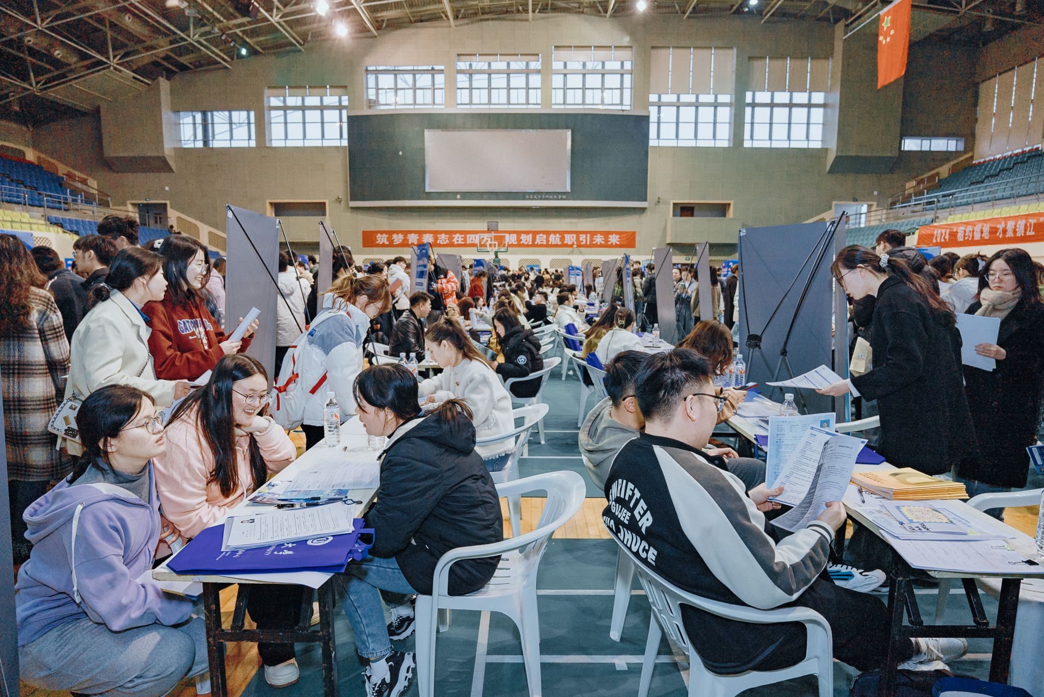 3月13日下午,江蘇大學體育館內人頭攢動,應屆生們拿著自己的簡歷,尋找自己心儀的崗位,“我學材料類專業的,想找研發類工作,期待月薪在1萬元以上?!苯K大學研三學生范欣竹說,自己老家是東北的,想留在鎮江發展。