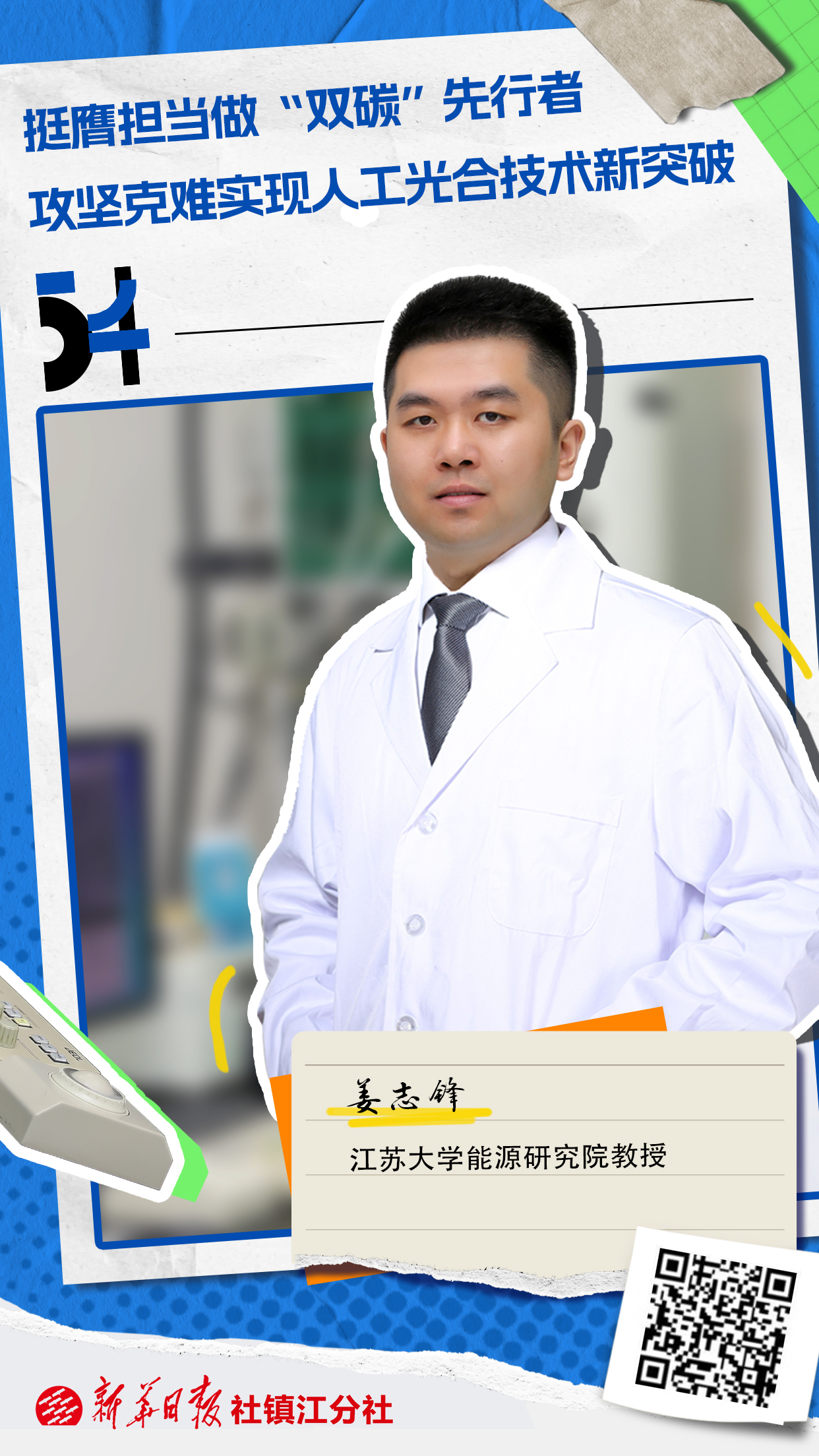 “80后”青年姜志鋒是江蘇大學(xué)與美國(guó)哥倫比亞大學(xué)聯(lián)合培養(yǎng)的博士、香港中文大學(xué)及香港城市大學(xué)“香江學(xué)者計(jì)劃”博士后。2020年,他通過(guò)江蘇大學(xué)“金山學(xué)者計(jì)劃”入校任教,主要從事碳中和領(lǐng)域科研工作。他緊密?chē)@國(guó)家碳達(dá)峰碳中和重大戰(zhàn)略需求,致力于人工碳循環(huán)領(lǐng)域的技術(shù)革新,發(fā)展光電耦合新技術(shù),水平達(dá)世界一流,為全球降碳事業(yè)貢獻(xiàn)了中國(guó)智慧。