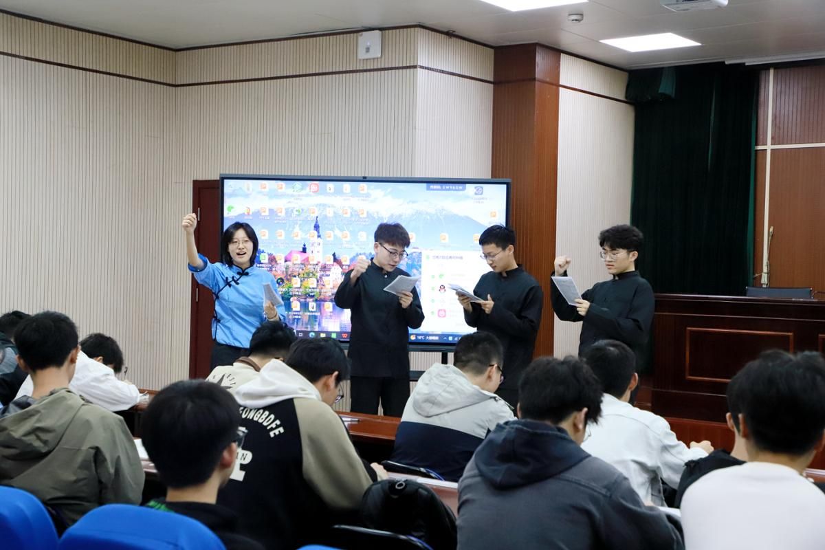 課上布置作業(yè),班級(jí)全員排練,課堂分組展演,在思政課教師金麗馥的指導(dǎo)下,江蘇大學(xué)金山英才班和卓越工程師班的200多名學(xué)生圍繞課程教學(xué)內(nèi)容,結(jié)合“五四運(yùn)動(dòng)”歷史場(chǎng)景,通過演講、朗誦、情景劇等形式,把思政課堂變成舞臺(tái),讓思政課煥發(fā)活力,展現(xiàn)風(fēng)采。