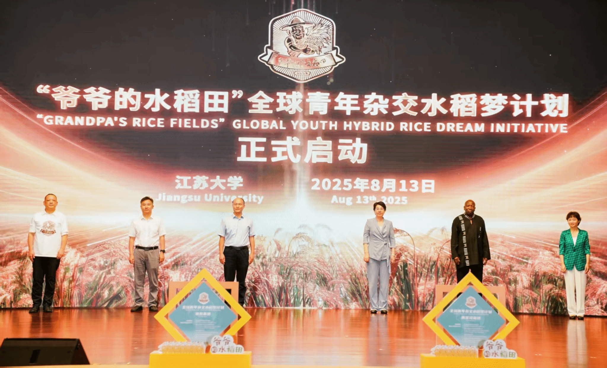 2025年8月13日,由聯(lián)合國(guó)糧農(nóng)組織駐華代表處、湖南省袁隆平農(nóng)業(yè)科技獎(jiǎng)勵(lì)基金會(huì)、中國(guó)水稻研究所與中國(guó)作物學(xué)會(huì)特用作物專業(yè)委員會(huì)聯(lián)合主辦、江蘇大學(xué)承辦的 “爺爺?shù)乃咎铩比蚯嗄觌s交水稻夢(mèng)計(jì)劃啟動(dòng)儀式,在鎮(zhèn)江市隆重舉行。江蘇大學(xué)校長(zhǎng)邢衛(wèi)紅出席并致辭,中外青年代表齊聚一堂,共同見(jiàn)證這一承載著袁隆平院士 “禾下乘涼夢(mèng)” 與 “雜交水稻覆蓋全球之夢(mèng)” 的公益計(jì)劃正式啟航。