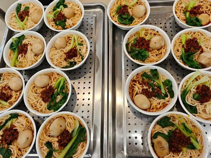 蛋糕的甜意還在舌尖,學校又送上另一份驚喜——一碗碗熱氣騰騰的“長壽面”被端到新生和家長面前。“這碗面里藏著學校的心意,既代表‘綿長不斷的關愛’,也象征‘同學情、親子情長長久久’。”現場工作人員的解釋,讓這份簡單的食物更添溫情,新生們和家長一起共享這份難忘的幸福時刻。
