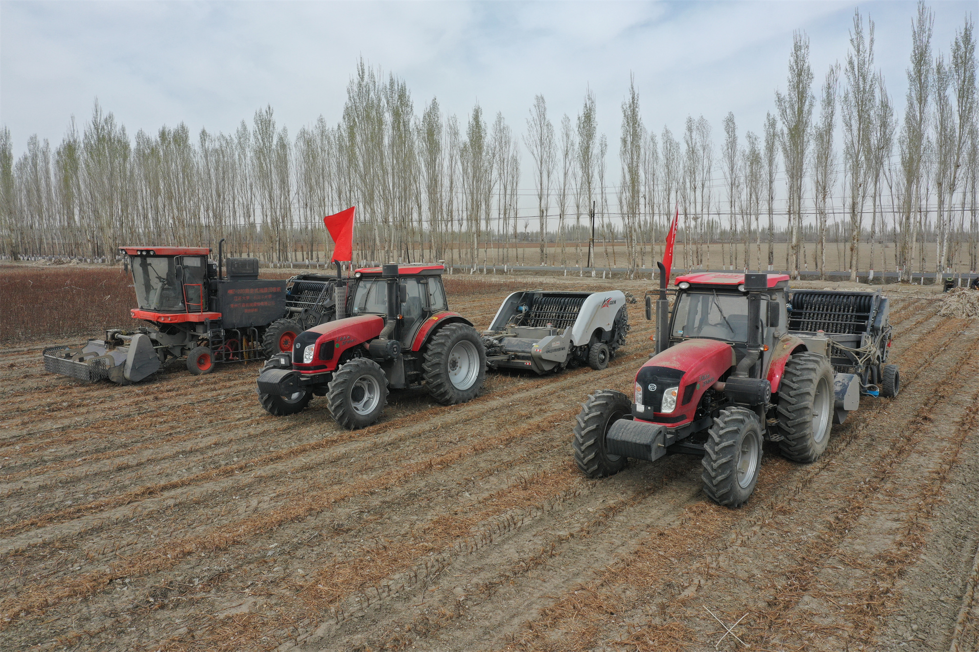 團隊研發的秸稈粉碎還田殘膜回收機在新疆沙灣縣作業 受訪者供圖