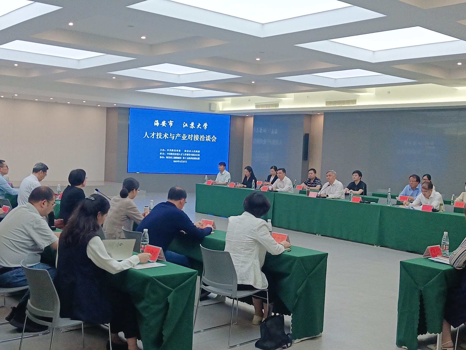 江蘇大學與海安市委市政府舉行了科技成果產業化基地揭牌儀式,授予海安上湖創新區為江蘇大學科技成果轉化基地;海安市發改委、科技局、人才辦和上湖創新區相關負責人提出了人才和創新創業項目需求,海安9個企業相關負責人提出了技術需求,江蘇大學技術專家進行了科技成果轉化需求的回應和對接。